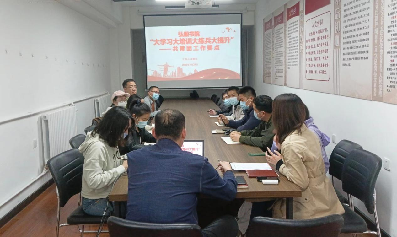 为深入开展“能力作风建设年”活动,进一步强化思想淬炼、政治历练、实践锻炼和专业训练,3月29日,我院在弘毅书院107会议室举行“大学习大培训大练兵大提升”活动。团委副书记孟繁菲以“共青团工作要点”为题开始第一讲,弘毅书院学生管理队伍全体教师参加。