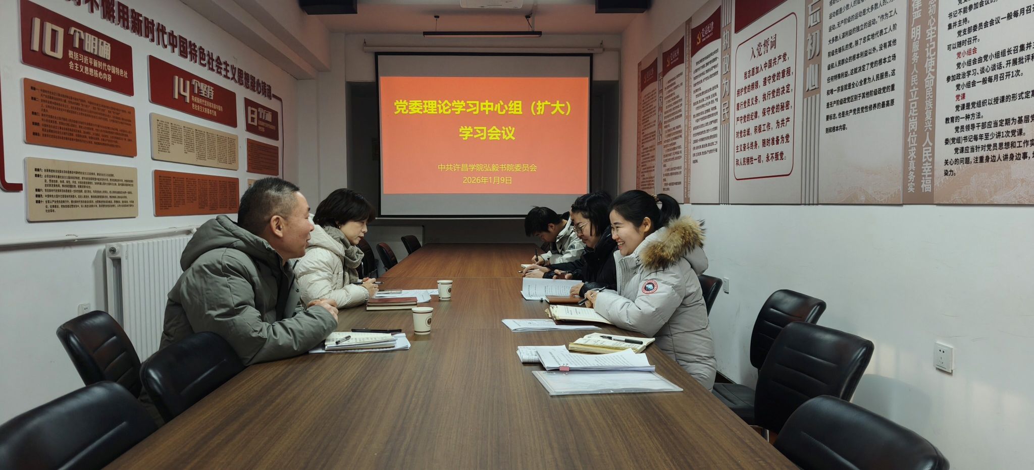 2026年1月9日上午,弘毅书院党委在弘毅书院107会议室召开理论学习中心组(扩大)学习会议,专题学习《国家主席习近平发表二0二六年新年贺词》及《深入学习宣传贯彻习近平总书记重要讲话精神 加强网络生态治理 营造清朗网络空间》核心内容。会议由书院党委副书记李静主持,党委理论学习中心组(扩大)全体成员参加学习。