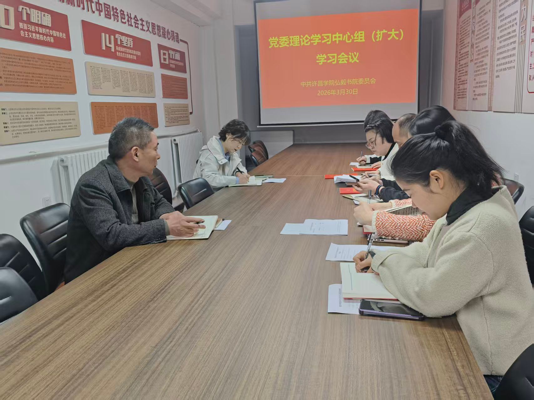 3月30日上午,弘毅书院党委在书院107会议室召开理论学习中心组(扩大)学习会议。书院党委副书记李静主持会议并领学相关内容,党委理论学习中心组(扩大)全体成员参加会议。