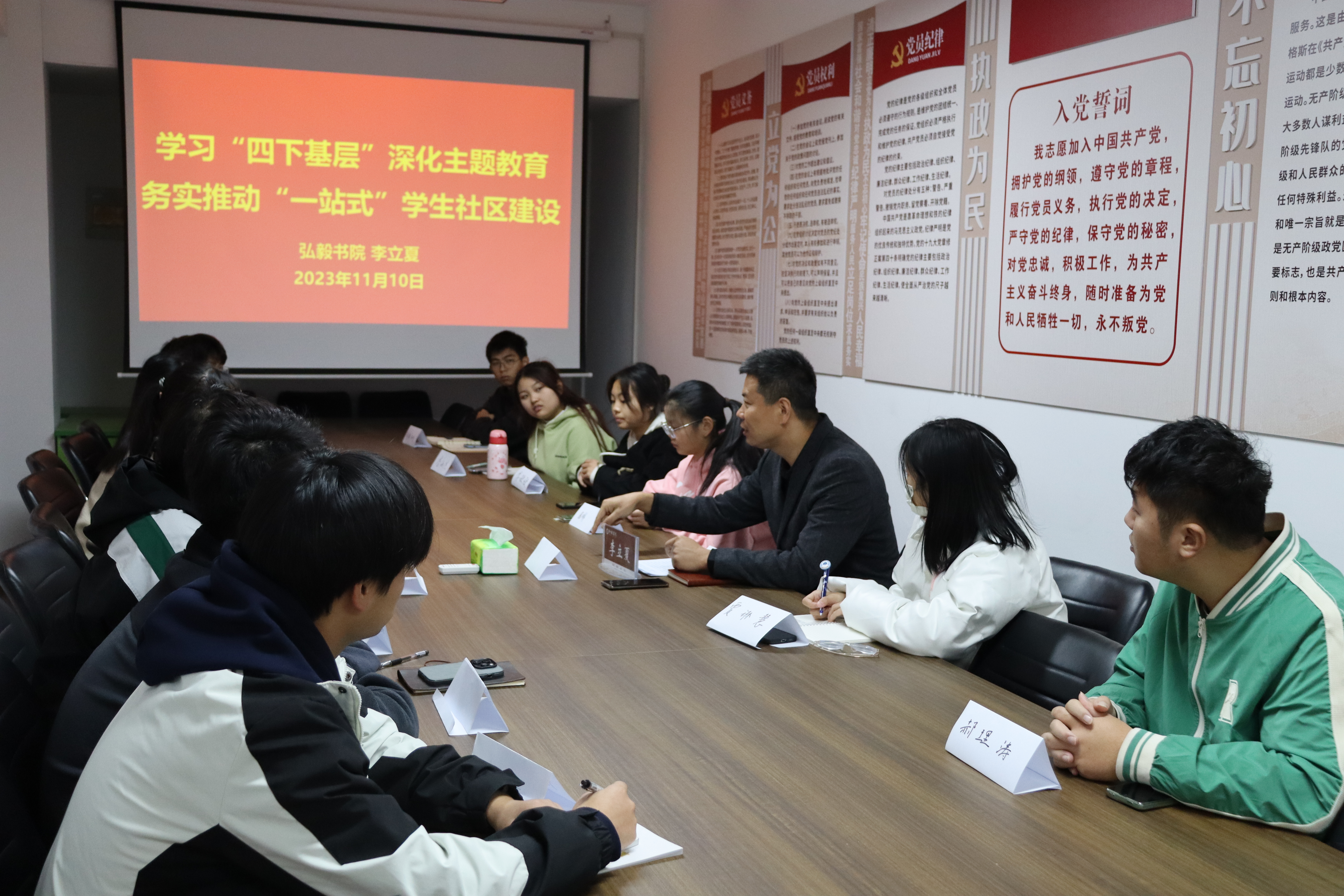 11月10日上午,书院党委书记李立夏以《学习“四下基层” 深化主题教育 务实推动“一站式”学生社区建设》为主题,为社区学生代表上了一次生动的思政课。