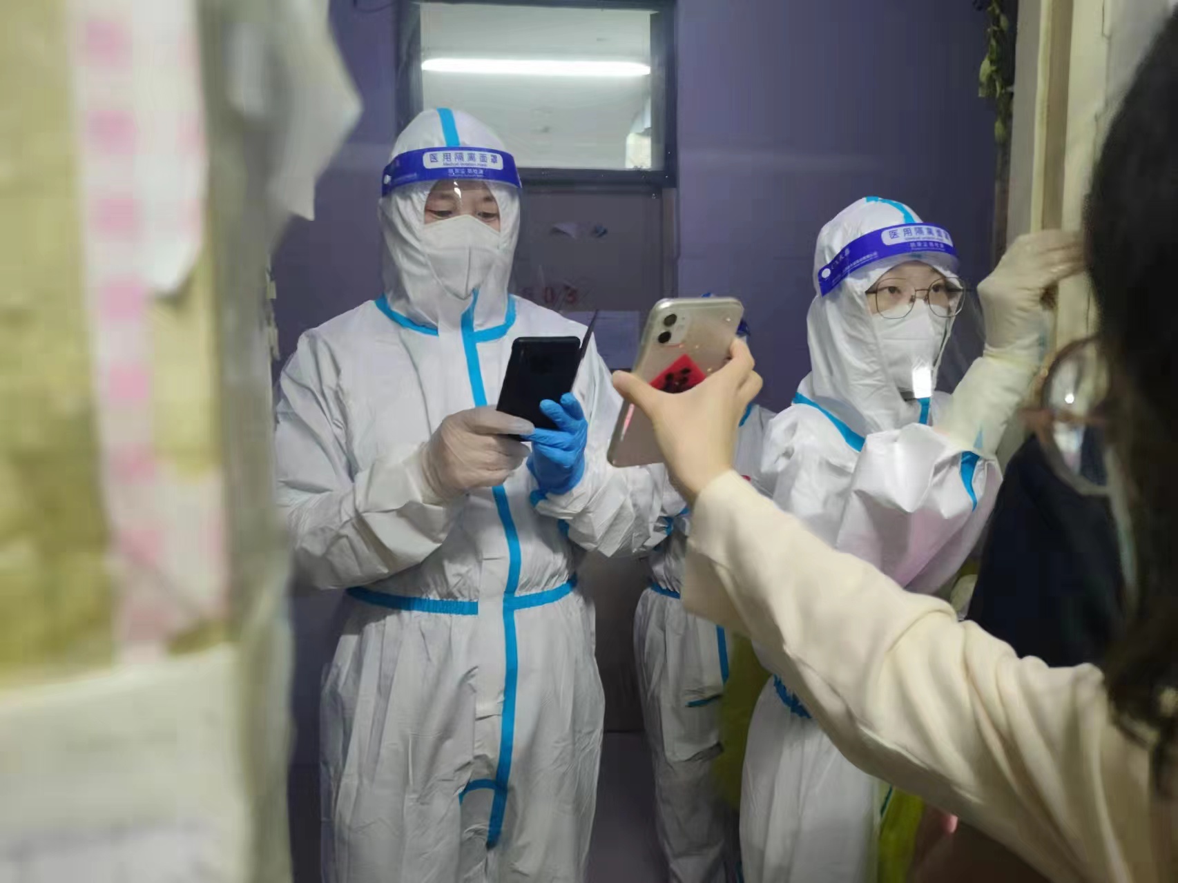 得知疫情突袭校园,国际教育学院(弘毅书院)党委书记路运洪、院长孟凡韶和两院的班子成员们心急如焚,立即要求志愿者突击队奔赴一线,所有专兼职辅导员即刻到位,坚决服从校党委和疫防办的统一部署和要求,尽全力克服一切困难,以保障4233名学生的健康和生命安全。但他们也深知:两个院教师与管理团队只有四十余名,其中一多半人员或被隔离、或被封控在小区,另或是不符合基本条件无法前往一线。16名以国际教育学院李想副书记为队长的党员教师志愿者突击队员们,所承受的巨大压力和体力上的辛苦更是难以想象,为了同学们的生命健康和安全,突击队员们义无反顾,毅然穿上防护服,终日奔波在楼宇楼层之间,加班筛查密接次密接者直至凌晨3点。在宿舍封控期间,同学们未起床,突击队员们的核酸检测已经结束,准备为整栋楼学生送早餐,学生刚吃完饭,他们又化身“大白”,挨个敲门入舍为学生检测核酸,汗水一次次湿透了他们的衣衫。