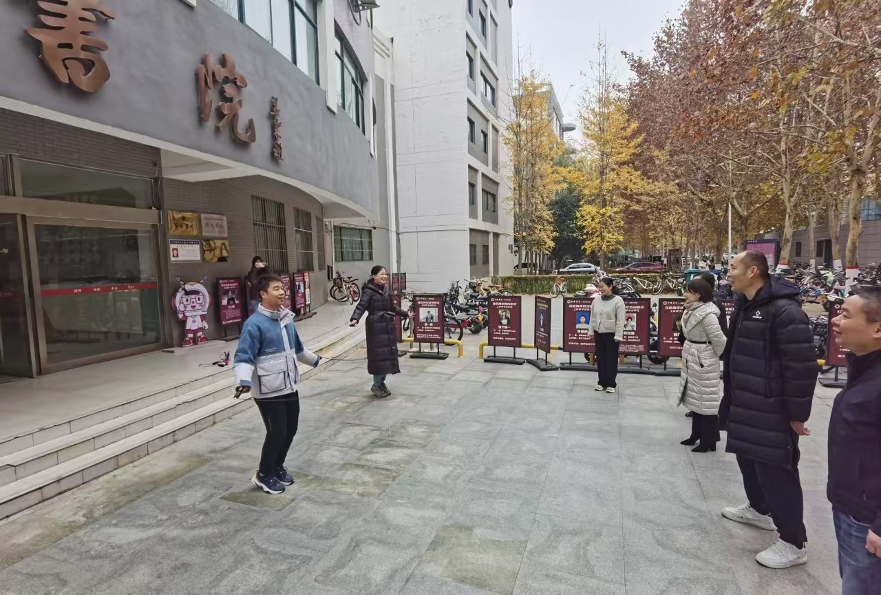 活动当天,虽然气温较低,但书院门口广场上上热情似火。书院全体教职工们积极参与,以饱满的热情投入到了各项趣味比赛中。比赛项目丰富多样,包括跳绳、踢毽子、扔飞镖等,既有竞技性,又不失趣味性,大家活力四射,忘我投入,笑声不断,现场气氛和谐而欢快。