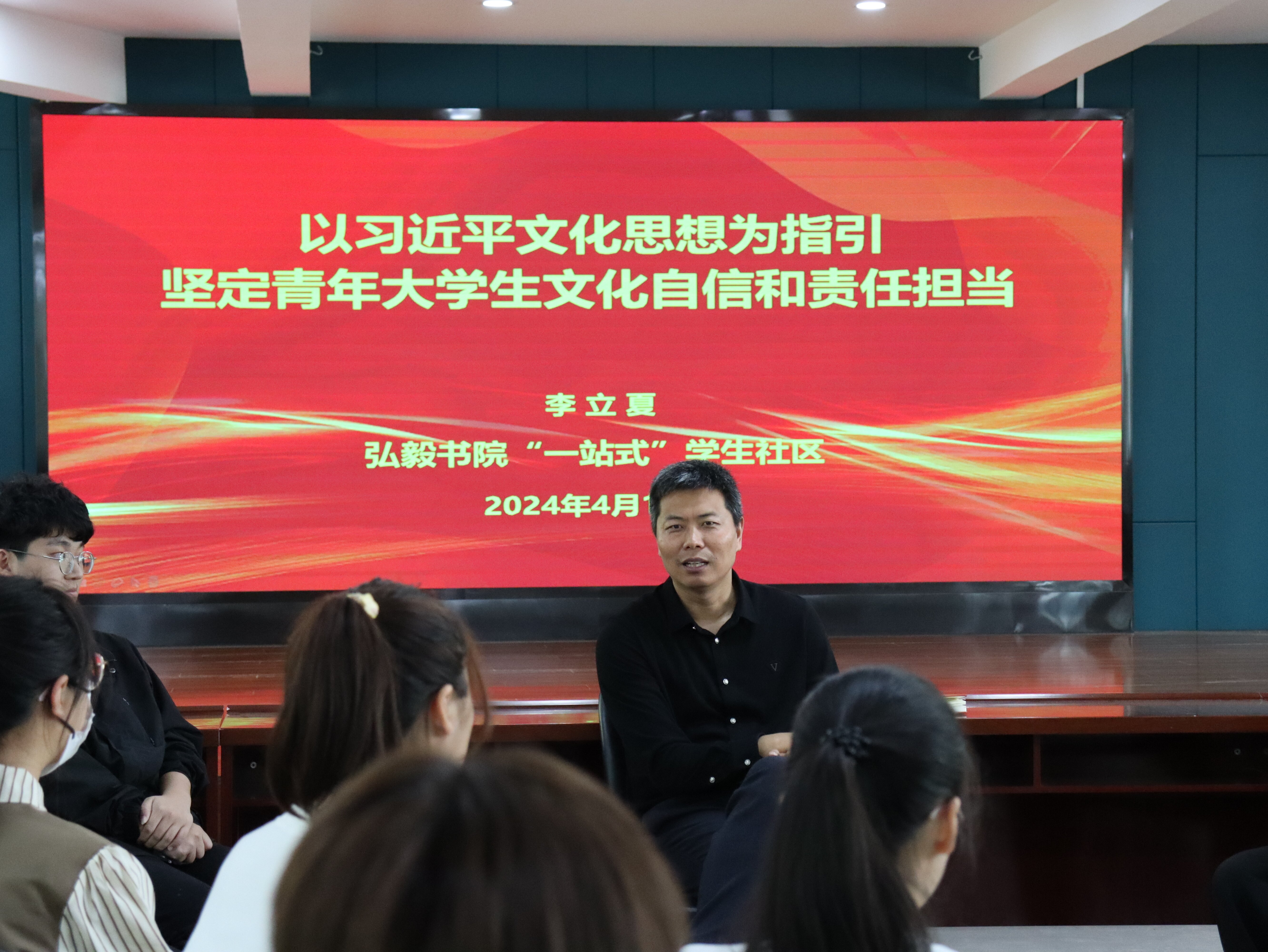 4月11日中午,社区党委书记李立夏为社区学生代表讲授“以习近平文化思想为指导,坚定青年大学生文化自信和责任担当”专题党课。