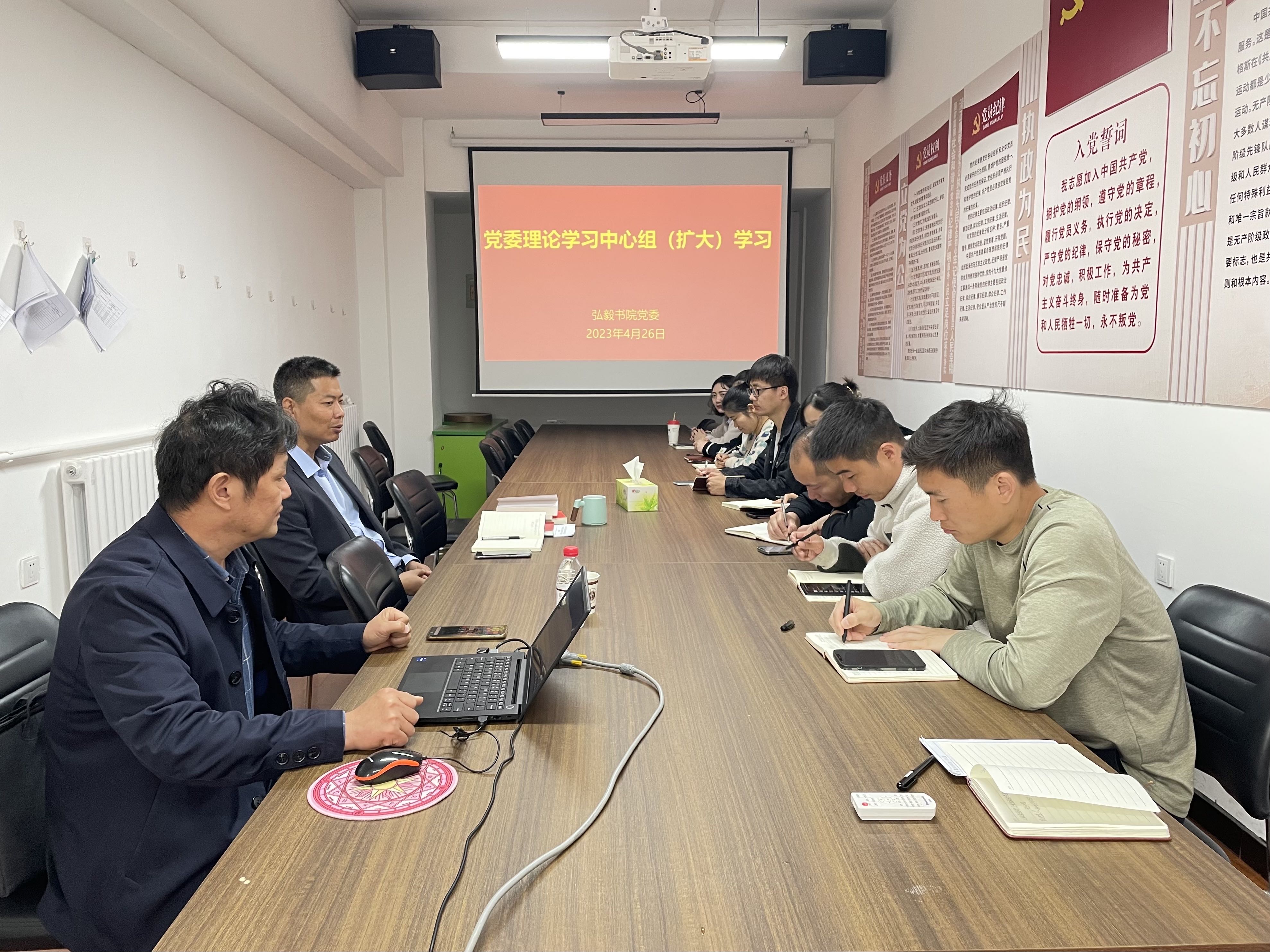 为全面贯彻党的二十大精神,深入推进新时代党的建设新的伟大工程,根据《中共许昌学院委员会在全校党员中深入开展学习贯彻习近平新时代中国特色社会主义思想主题教育实施方案》精神,4月26日上午,弘毅书院开展党委理论学习中心组(扩大)学习。此次学习特邀许昌学院学报编辑部主任郭现军教授主讲,书院党委书记李立夏主持,全体教职工参加。