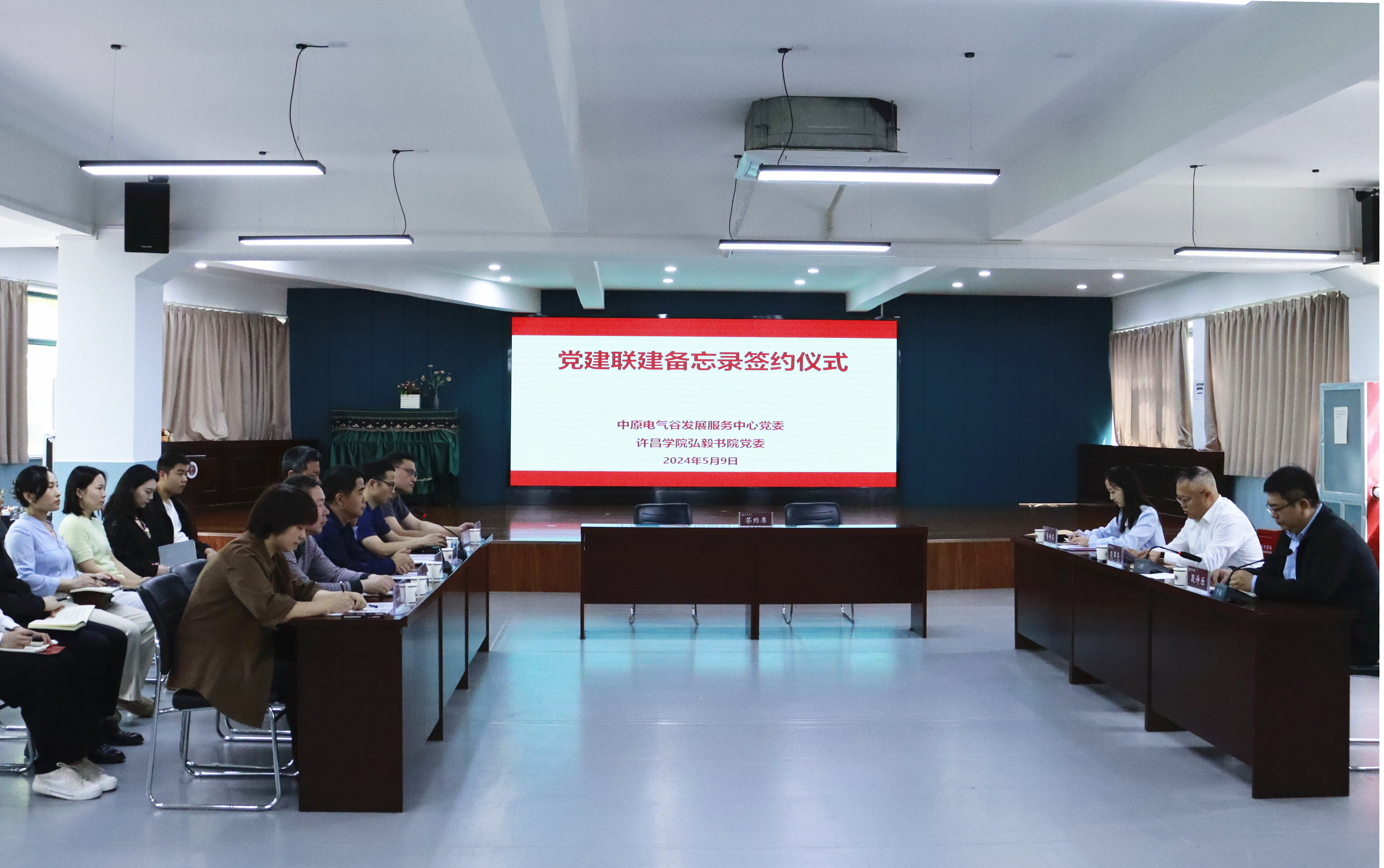 为开启党建融合新局面,推动党建引领高质量发展,5月9日上午,弘毅书院党委与中原电气谷发展服务中心党委签署党建联建备忘录。中原电气谷发展服务中心党委委员、副主任范军亮等一行出席,校党委组织部、弘毅书院等部门负责同志、相关师生代表30余人参加活动。
