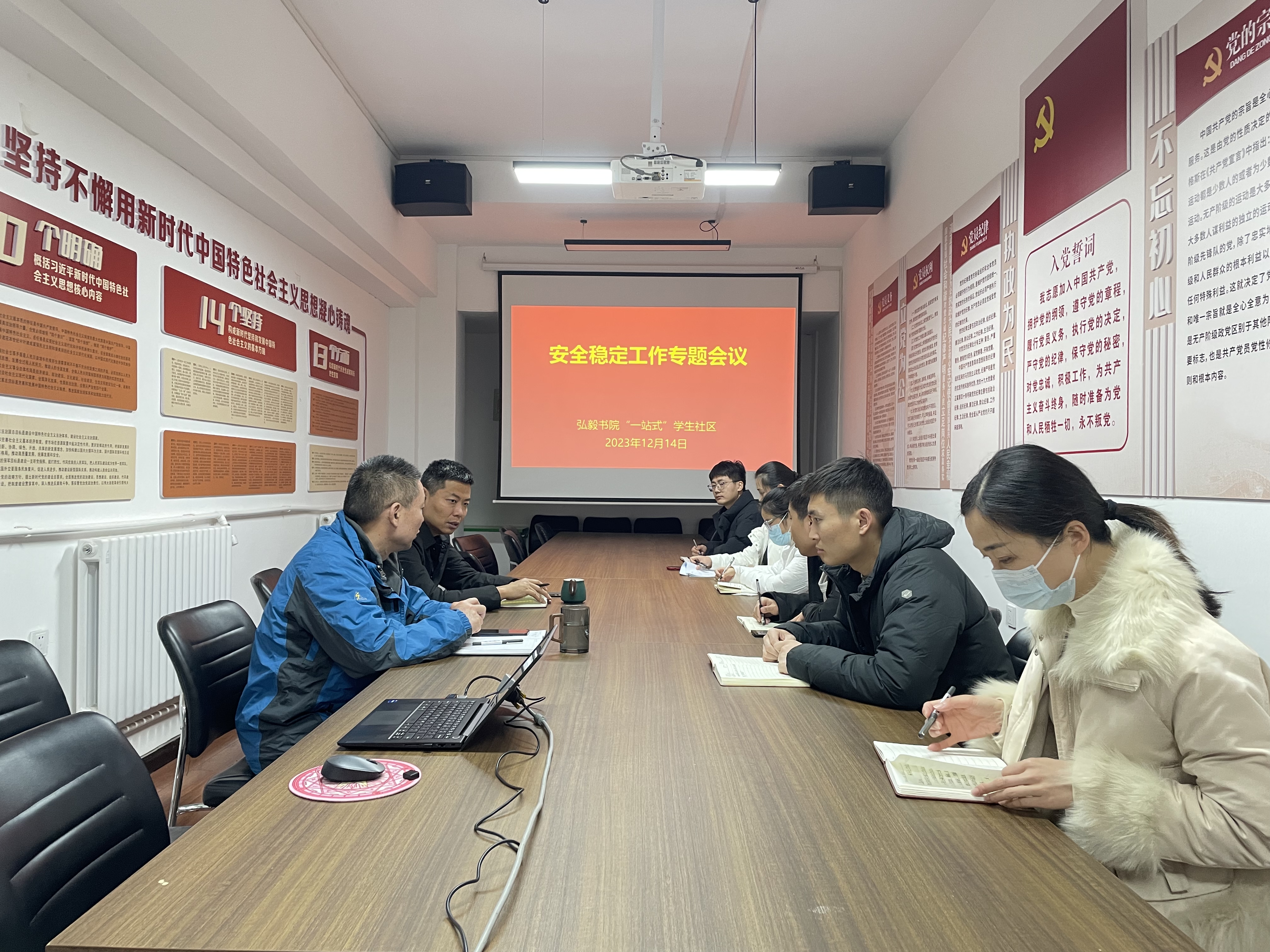 12月14日上午,弘毅书院“一站式”学生社区召开安全稳定工作会议,社区党委书记李立夏主持会议并讲话,全体社区辅导员参加会议。