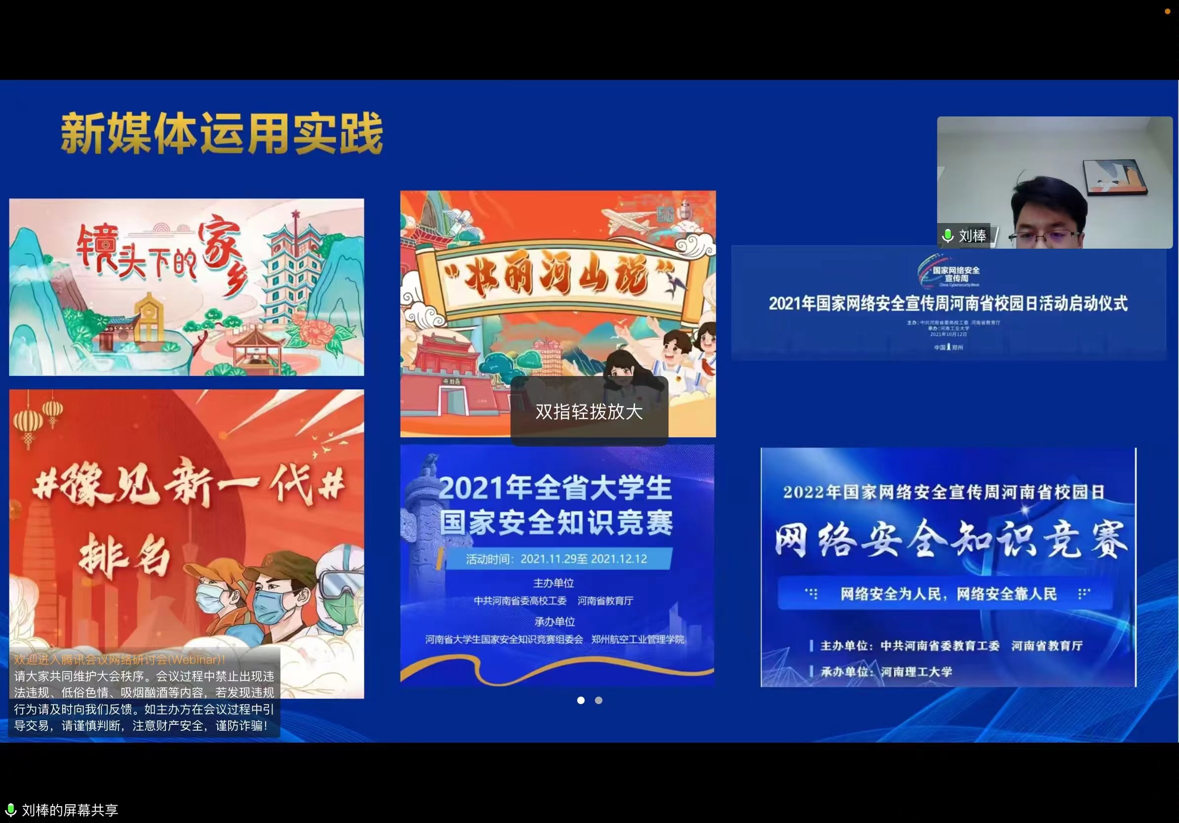 本次讲座特别邀请了河南省教育融媒体运营中心副主任刘棒,主题为《融媒体运营实践——从微信、短视频策划谈起》。活动由党委宣传部副部长钟伟平主持,学校组织四大媒体团队、七个网络文化工作室的指导老师及学生骨干团队共计300人报名参加。