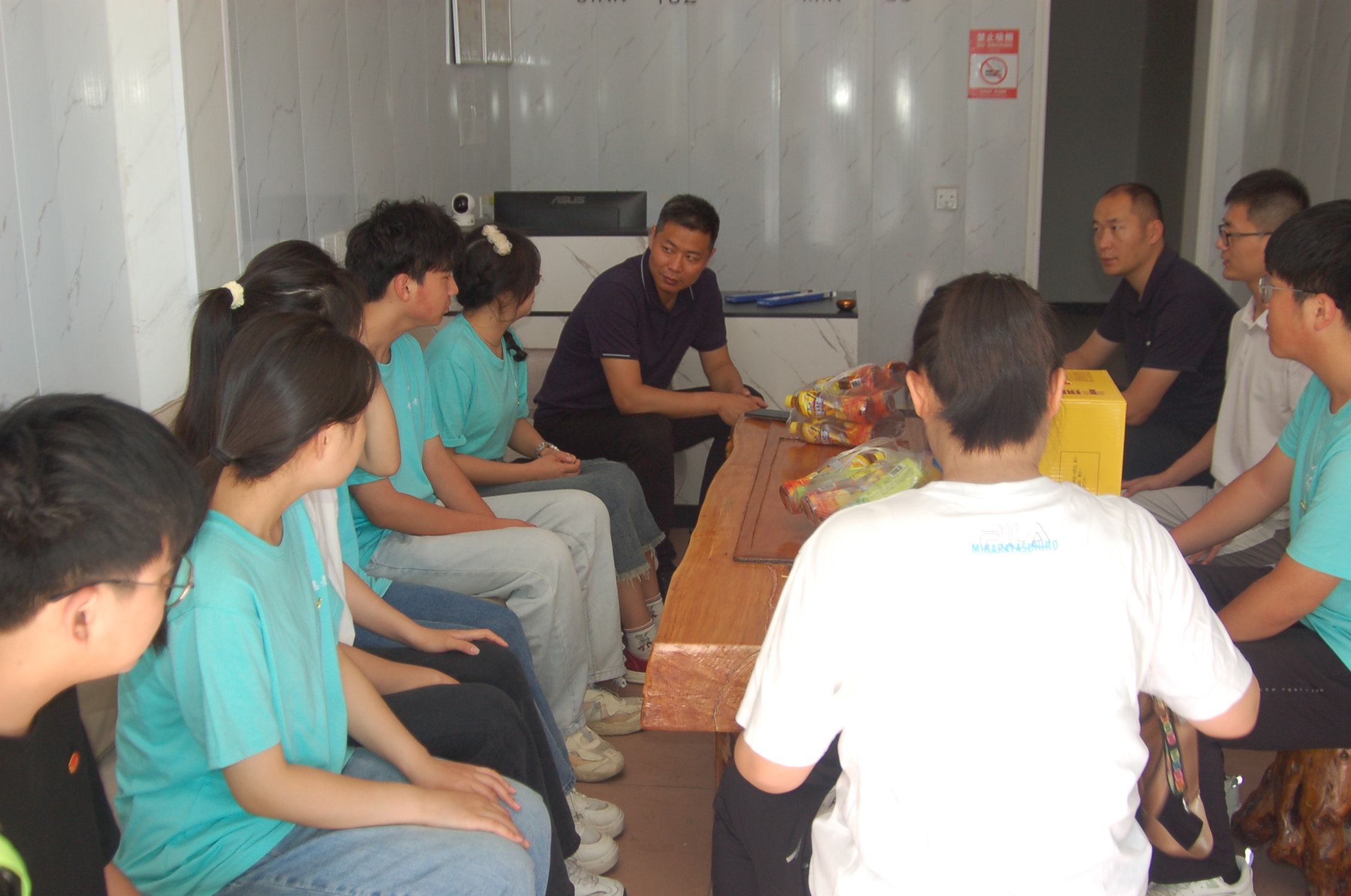 下午,弘毅书院党委书记李立夏与辅导员老师孟繁菲、孙鹏、吴帅一行来到兰考对实践队进行指导和慰问。李立夏书记和老师们对实践队成员们在兰考的生活情况表达了深切的关心,不仅为队员们带来了饮品零食,还对成员们阐述了大学生开展实践活动的重要性与必要性。李立夏书记讲到,“青年人不要怕吃苦,要积极参与到艰苦工作中去,努力克服困难、积极提升自己”。李立夏书记还对实践队下一步计划的实施提出了详细客观的建议,对实践队整体的活动计划以及成员们的内在精神建设产生了极大的帮助。