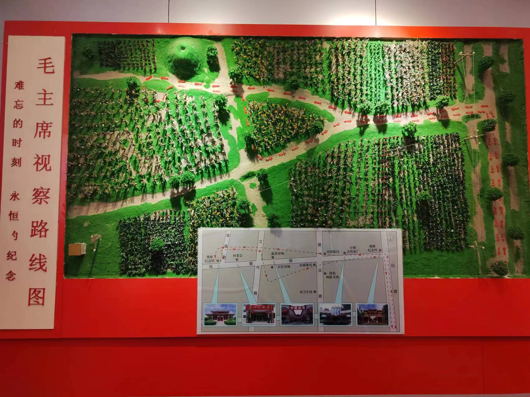 毛主席视察纪念馆位于长葛市区视察路西段八七村内,是八七村委会为纪念毛主席1958年8月7日到八七村视察而建设的。展馆对毛主席的光辉一生及其为中国革命做出的巨大贡献作了详细地介绍,对毛主席到长葛视察的过程作了全面介绍。据史料记载,1958年5月,长葛县委第一书记吕炳光在中共八大二次会议上介绍了该县深翻土地的情况,并详细说明了深翻土地的方法和开展深翻工具改革的经验。毛主席对此给予了高度评价:“感谢河南省长葛县第一书记发言,这个发言很好,我又看了一遍,一年把112万亩土地全部深翻一遍……这是一大发明。”在毛主席的关心、激励下,八七村全体村民团结奋进,艰苦奋斗,缔造了全省瞩目的“亿元明星村”的神话。毛主席对长葛的视察体现了中国共产党始终坚持人民至上,实事求是的工作方针。中国共产党从诞生开始就把“人民”二字镌刻在旗帜上,把“全心全意为人民服务”作为党的根本宗旨,形成了“坚持一切为了群众,一切依靠群众,从群众中来,到群众中去”的群众路线。