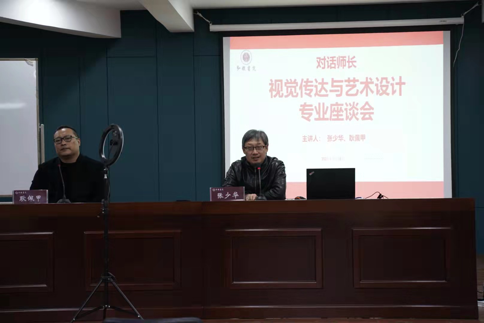 11月8日19:00,弘毅书院“对话师长”活动特邀许昌市美术家协会主席、许昌学院钧瓷文化与产业研究中心主任、美术与设计学院副院长张少华副教授,美术与设计学院耿沛甲老师来到书院多功能厅,与书院2021级视觉传达与艺术设计专业学生进行了交流。