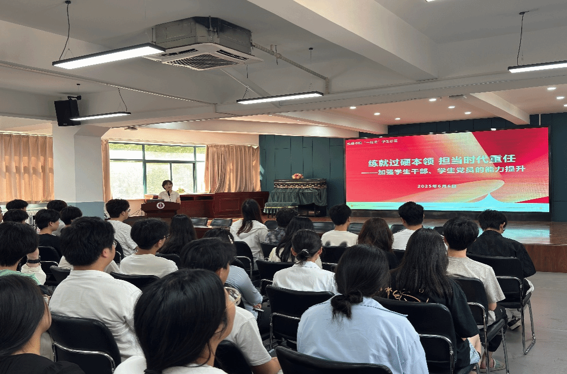 6月6日下午,弘毅书院“一站式”学生社区党委副书记李静在弘毅书院二楼多功能厅讲授以“练就过硬本领 担当时代重任——加强学生干部、学生党员的能力提升”专题党课。社区全体教师、学生干部及学生党员代表70余人参加。