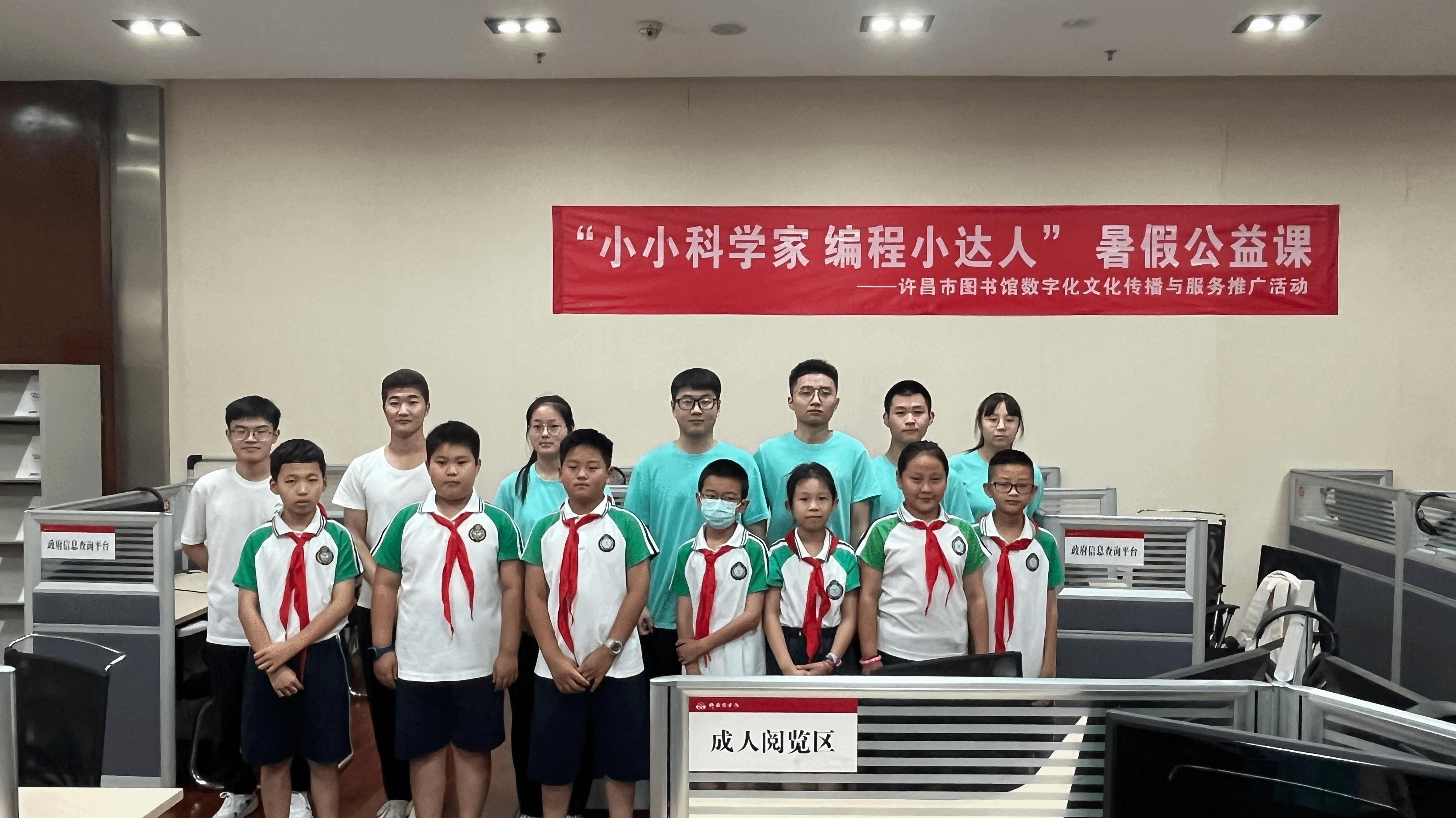 7月6日,“助行相伴,点亮科技梦”暑期社会实践队全体成员赴许昌市图书馆开展第三天的“小小科学家 编程小达人”少儿编程活动。
