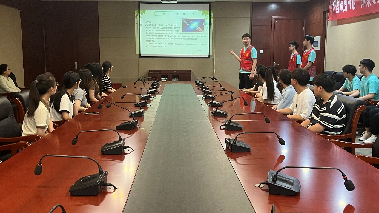 6月29日,“助行相伴,点亮科技梦”暑期社会实践队来到许昌市图书馆,组织并开展“探索专业兴趣 规划光明未来”高校专业介绍活动。