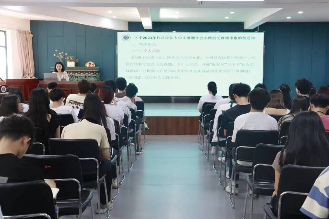 温甜老师依据关于2023年许昌学院大学生暑期社会实践活动课题申报及许昌学院大学生暑期“三下乡”社会实践团队评定方案向同学们分别介绍了个人实践、团队实践两个不同形式的申报条件及相关注意事项。本次暑期社会实践注重将第一课堂学科专业知识与“第二课堂”实践活动有机结合,持续探索实践育人新路径、新思路,更好地引领和帮助青年学生切身感受党的领导下过去五年和新时代十年取得宏伟成就,在服务家乡、服务人民中学、思、践、悟习近平新时代中国特色社会主义思想和党的二十大精神的世界观、方法论,呼吁弘毅学子用实际行动在以中国式现代化全面推进中华民族伟大复兴的使命任务中贡献青春力量。