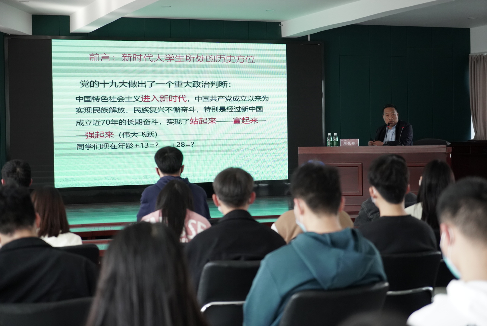 周银超副教授以大学生心理发展需求、目前所面临的实际状况为切入点,从“什么是信仰,人为什么需要信仰,如何选择一个正确信仰,马克思主义信仰的基本内容和主要结构,大学生如何确立科学的信仰”五个方面与同学们展开交流。他讲到,大学生在面对学业、职业等问题时要学会思考,尽早树立正确的世界观、人生观、价值观;信仰是从理论中来、从实践中来,要把理论与实际相结合,让理想照进现实。