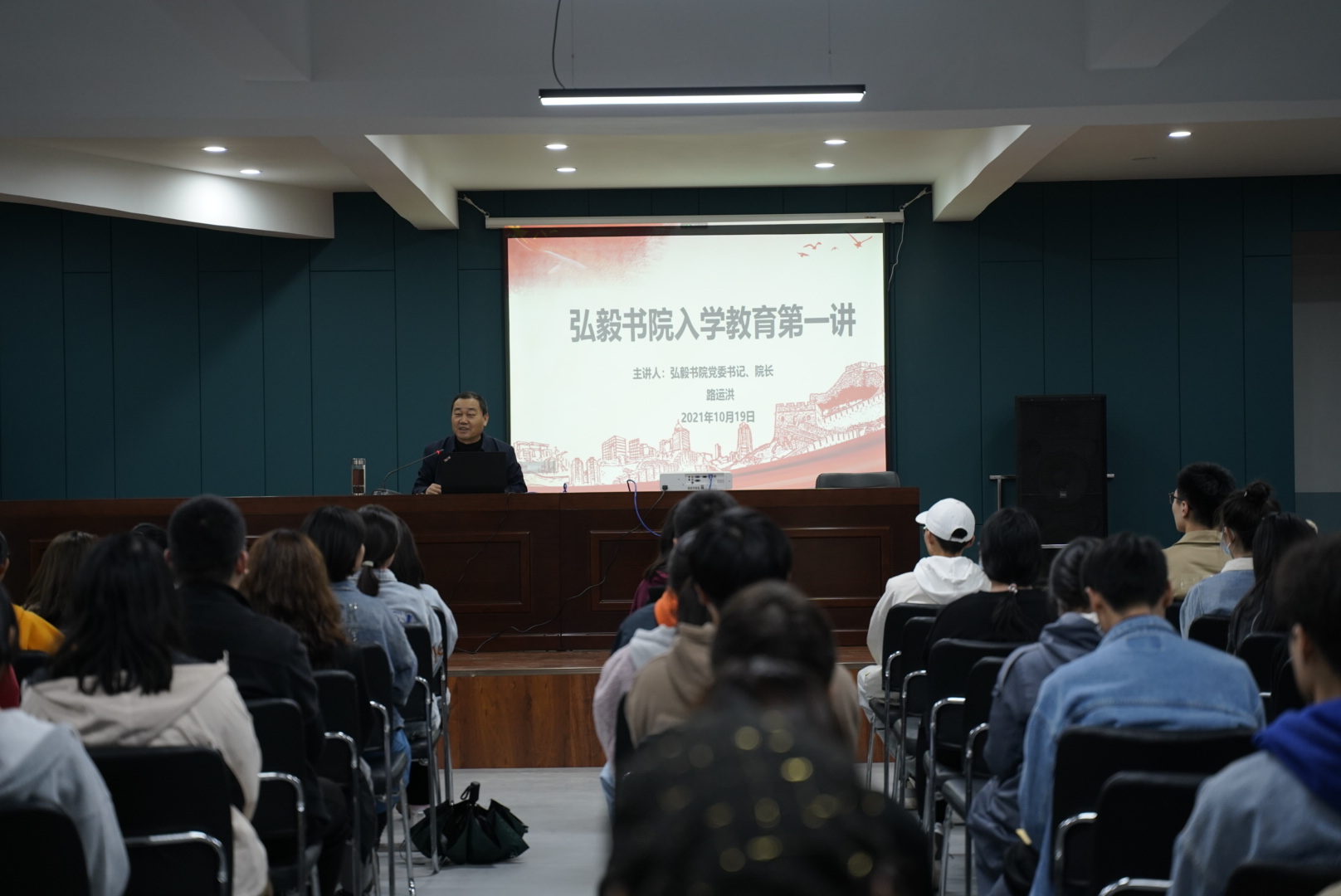 2021年10月19日19:00,弘毅书院组织1100余名大一新生共上入学教育第一课,此次入学教育由弘毅书院党委书记、院长路运洪主讲。
