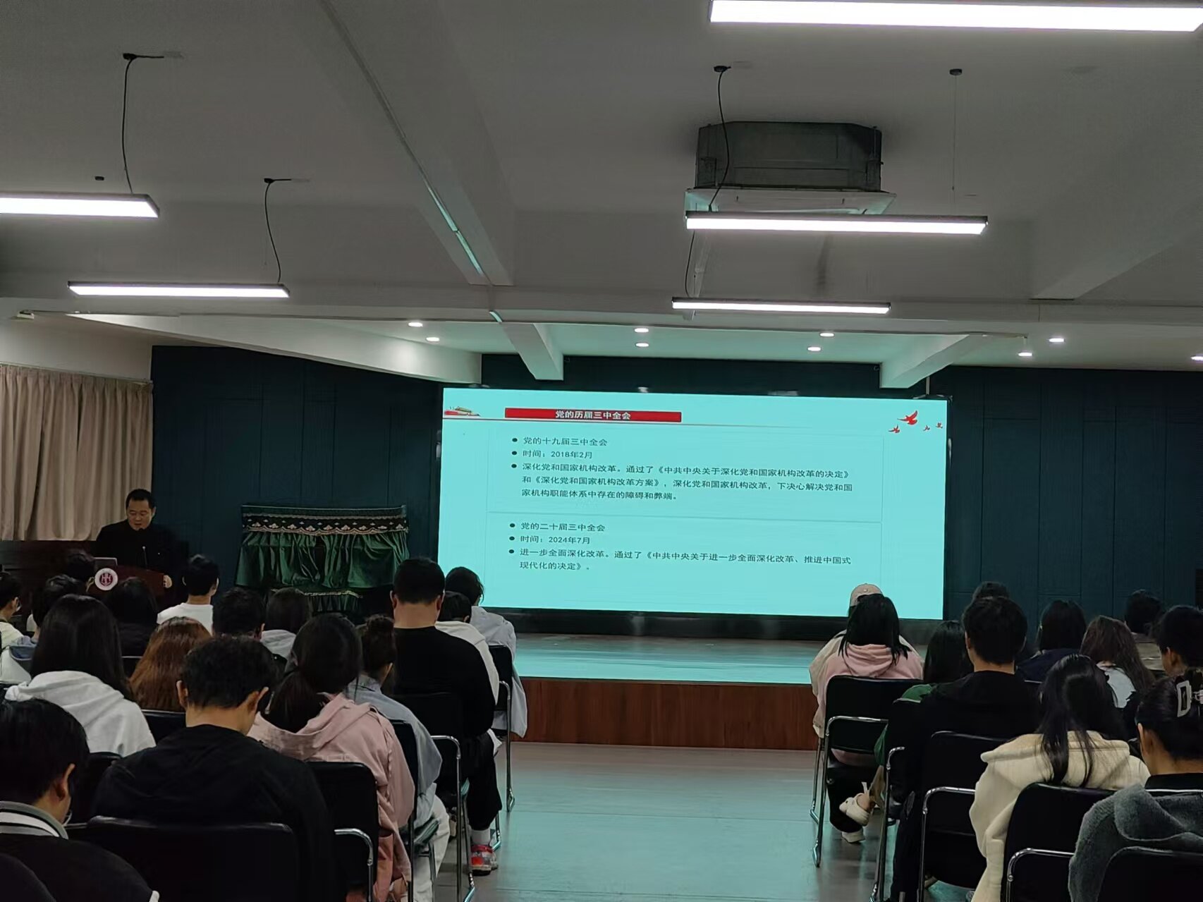 菅强老师强调作为大学生,我们要深刻理解党的二十届三中全会精神的内涵,勇担时代使命,努力学习,积极进取,为实现中华民族伟大复兴的中国梦砥砺奋进!