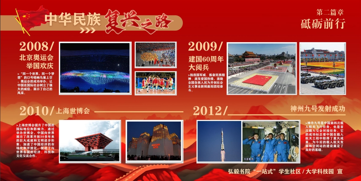 为庆祝中华人民共和国成立 75 周年,激发广大师生的爱国情怀,9月30日上午,弘毅书院“一站式”学生社区联合大学科技园一同举办“忆峥嵘岁月,颂盛世华章”主题图片展。
