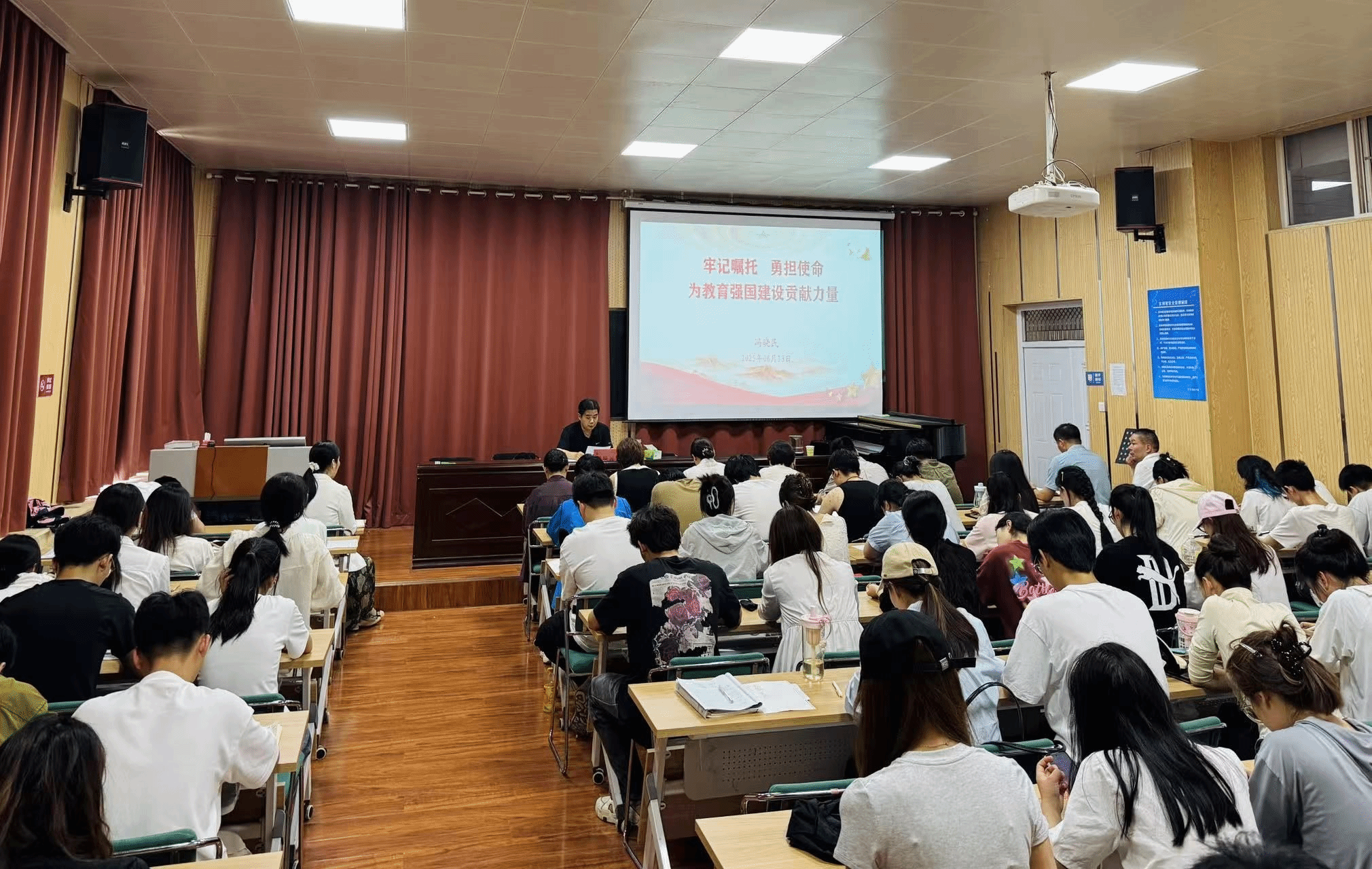 6月13日下午,副校长冯晓民在艺术楼会议室以“牢记嘱托、勇担使命 为教育强国建设贡献力量”为题,为弘毅书院师生代表讲授专题党课。弘毅书院领导班子成员、教工党员、学生党员及学生代表20余人现场聆听学习。