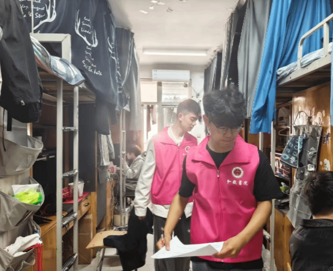 排查过程中,自管会工作人员逐间走访宿舍,重点检查内务卫生、物品摆放、地面清洁等情况,全面规范宿舍环境。同时,对违规电器、私拉乱接电线、杂物堆放等安全隐患进行细致排查,做到全覆盖、无死角。工作人员现场向同学们宣讲宿舍安全管理规定,普及安全用电、防火防盗、通风消杀等注意事项,引导大家自觉遵守宿舍制度,养成良好生活习惯,共同维护文明和谐的住宿氛围。