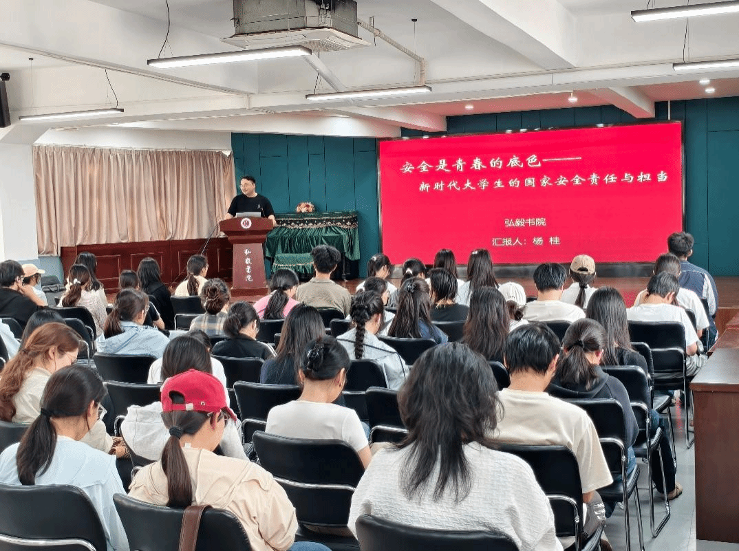 4月17日下午,弘毅书院“一站式”学生社区在书院205多功能报告厅特邀杨桂老师开展“安全是青春的底色”国家安全主题教育讲座。本次讲座聚焦总体国家安全观与大学生普法教育,重点讲解网络安全、反奸防谍、防范诈骗等关键内容,强化师生国家安全意识与自我保护能力。