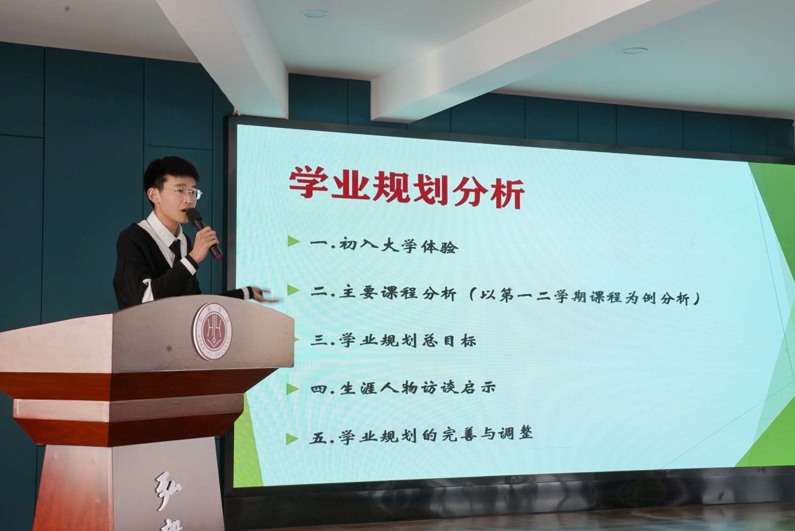书院大一学子历经撰写学业规划书、朋辈小组讲评,遴选出18位选手晋级书院初赛。初赛中,选手通过PPT展示和答辩两个环节,结合各自的专业特色、个人特长及兴趣爱好,展示自己的学业规划并加以论证。在展示环节,参赛选手主要从自我认识、专业及课程梳理、学业目标、计划与路径、评估与调整五个方面进行阐述。选手们的学业规划设计结构完整,重点突出,且目标制定贴切合理,演讲过程富有感染力。评委组老师及朋辈导师根据学生的讲解进行提问点评,并提出切实可行的建议对策。