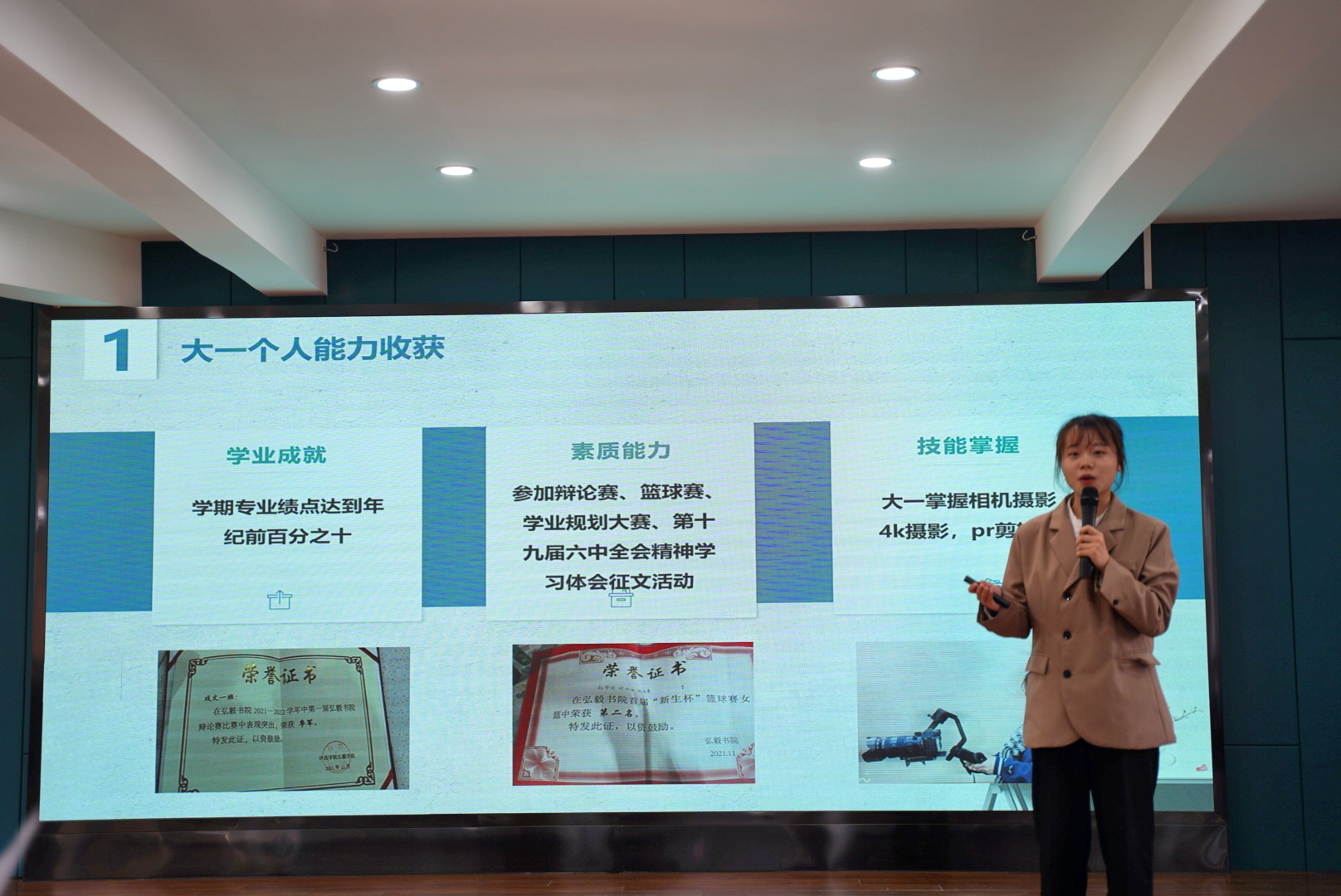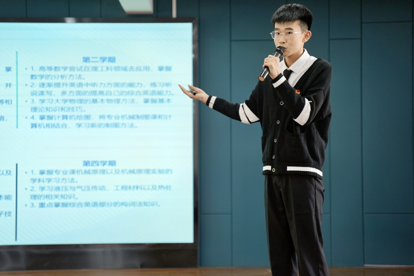 复赛现场,参赛选手围绕对大学学业的总体规划,从自我分析、目标制定、评估调整等方面进行展示,选手们的现场表现、随机应变能力和清晰的思路得到评委老师的一致点赞。