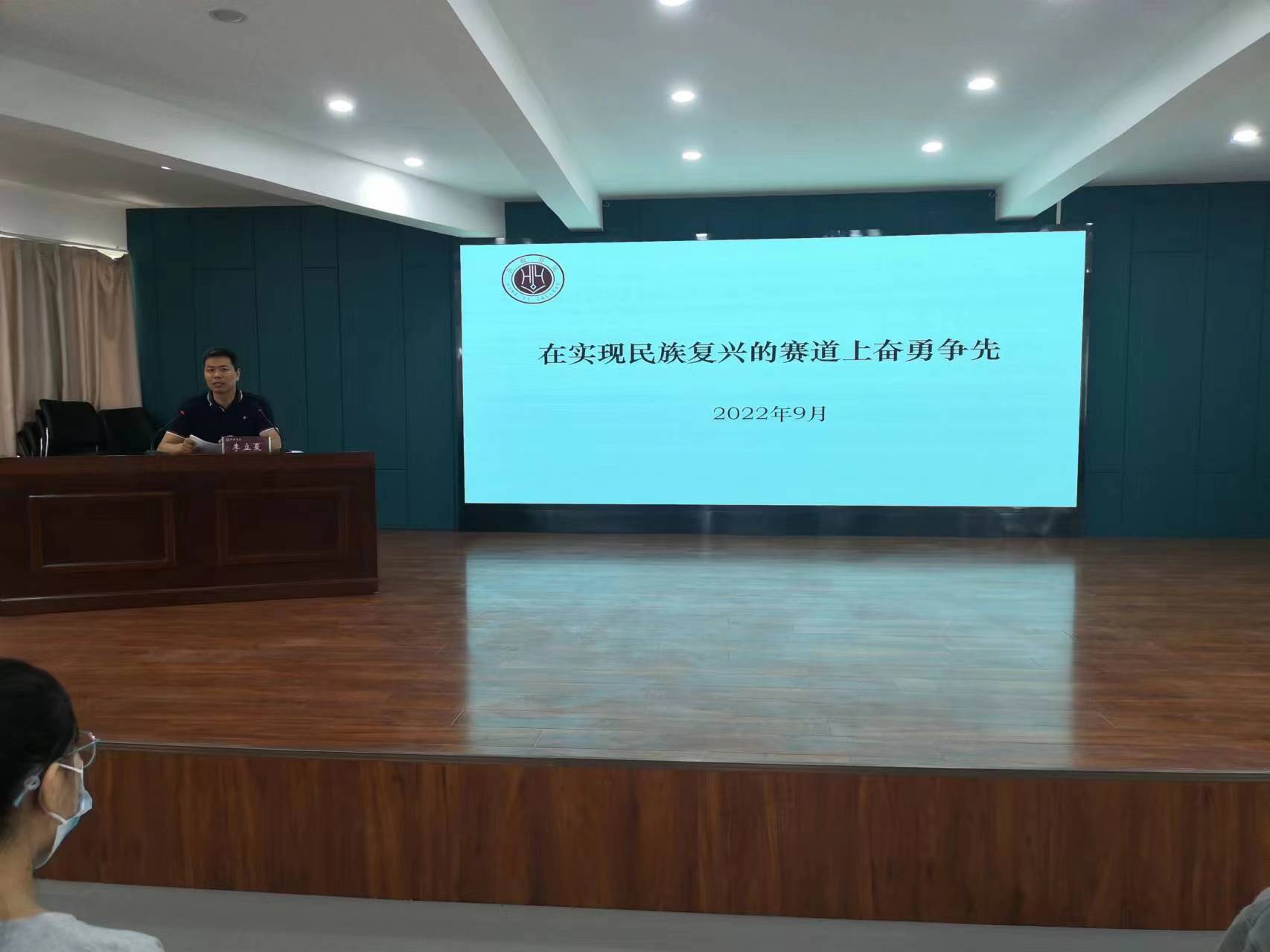 9月28日,弘毅书院组织大一新生在二楼报告厅开展开学思政第一课,党委副书记李立夏以《在实现民族复兴的赛道上奋勇争先》为题开展第一讲。