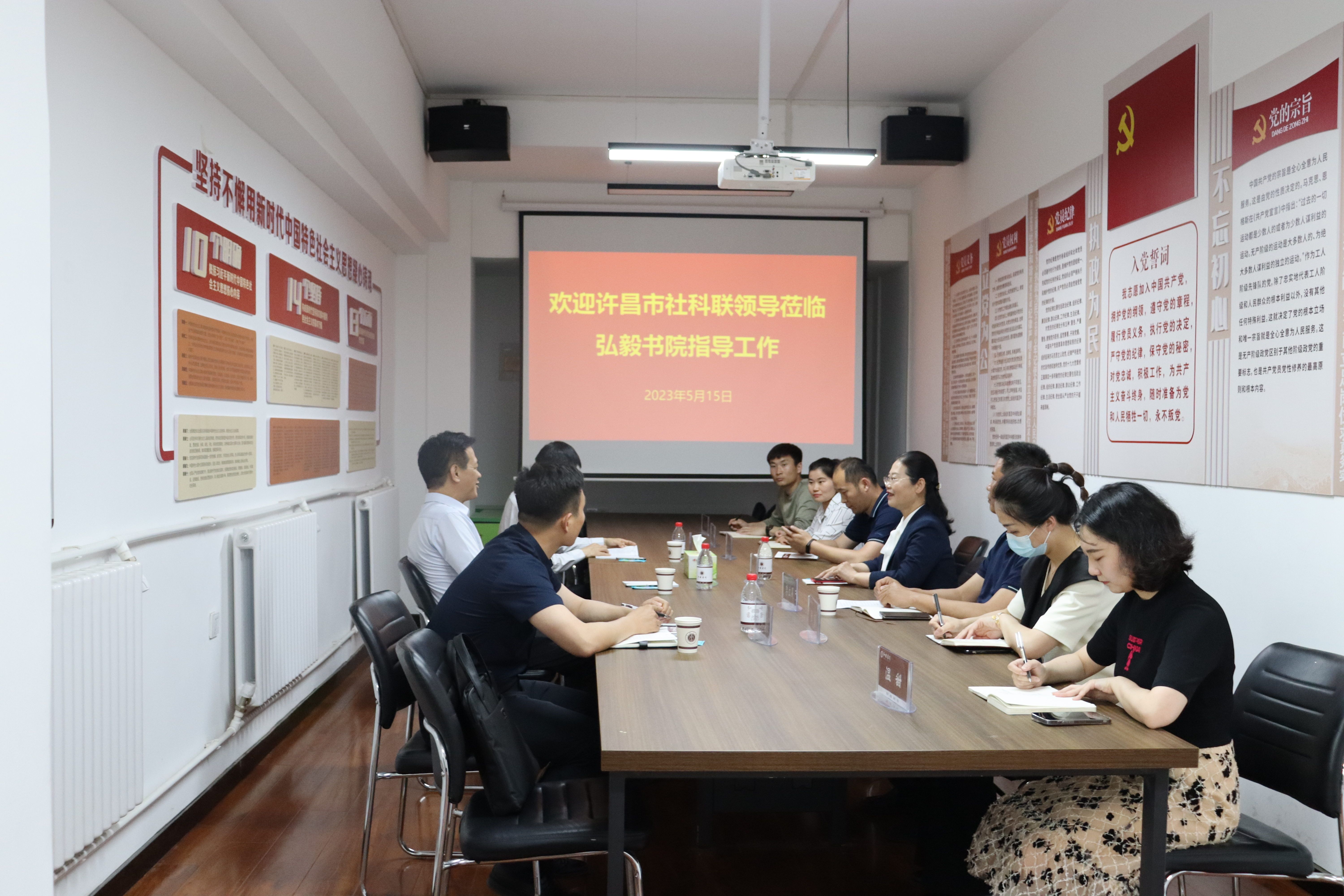 许昌市社科联专家组一行3人来到弘毅书院,对我院申报的许昌市社科普及基地进行现场考察。考察汇报会在弘毅书院107会议室进行。许昌市社科联主席孙晓飞任专家组组长,社科联副主席康运东、办公室主任李朕燊陪同考察。许昌学院副校长潘春彩教授,弘毅书院党委书记李立夏及书院各部门负责人参加了汇报会。