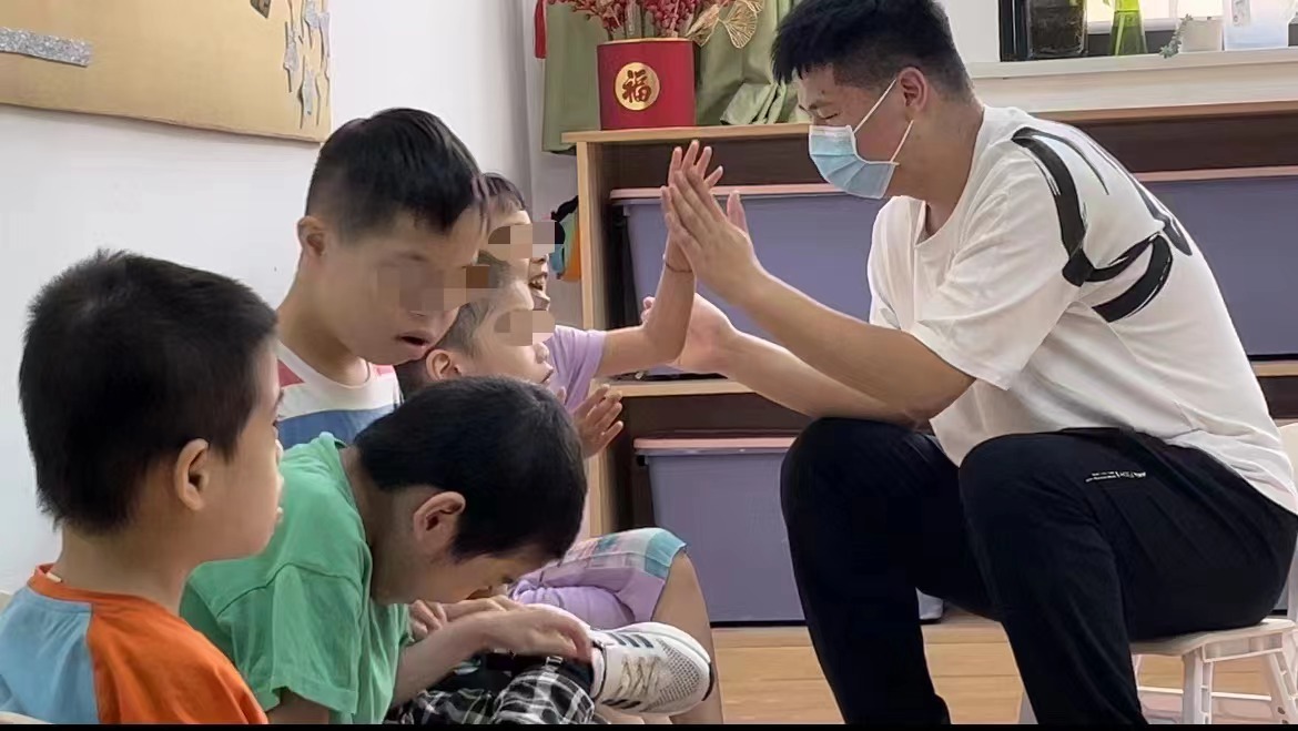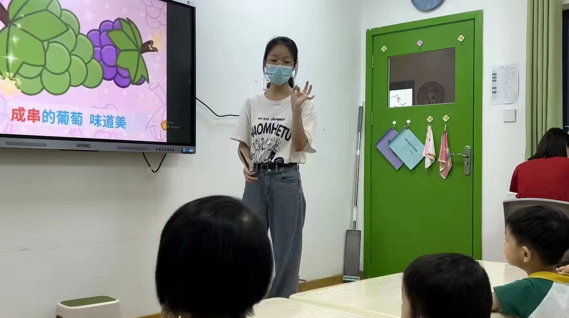 经过一周多的相处,志愿者们已经真正融入到福利院的大家庭中。在今天的活动中,孩子们已经可以在课堂上很好地配合“小老师”,孩子们能够坐在桌子旁认真听课,踊跃地回答问题。在志愿队成员姚珂所负责的班级中,孩子们被课堂中的问题、游戏吸引,这使得每个孩子都积极地参与到课堂之中。下课时间,志愿队成员化身“好朋友”和孩子们一起玩游戏。孩子脸上的笑容,是志愿者得到的最好的反馈。