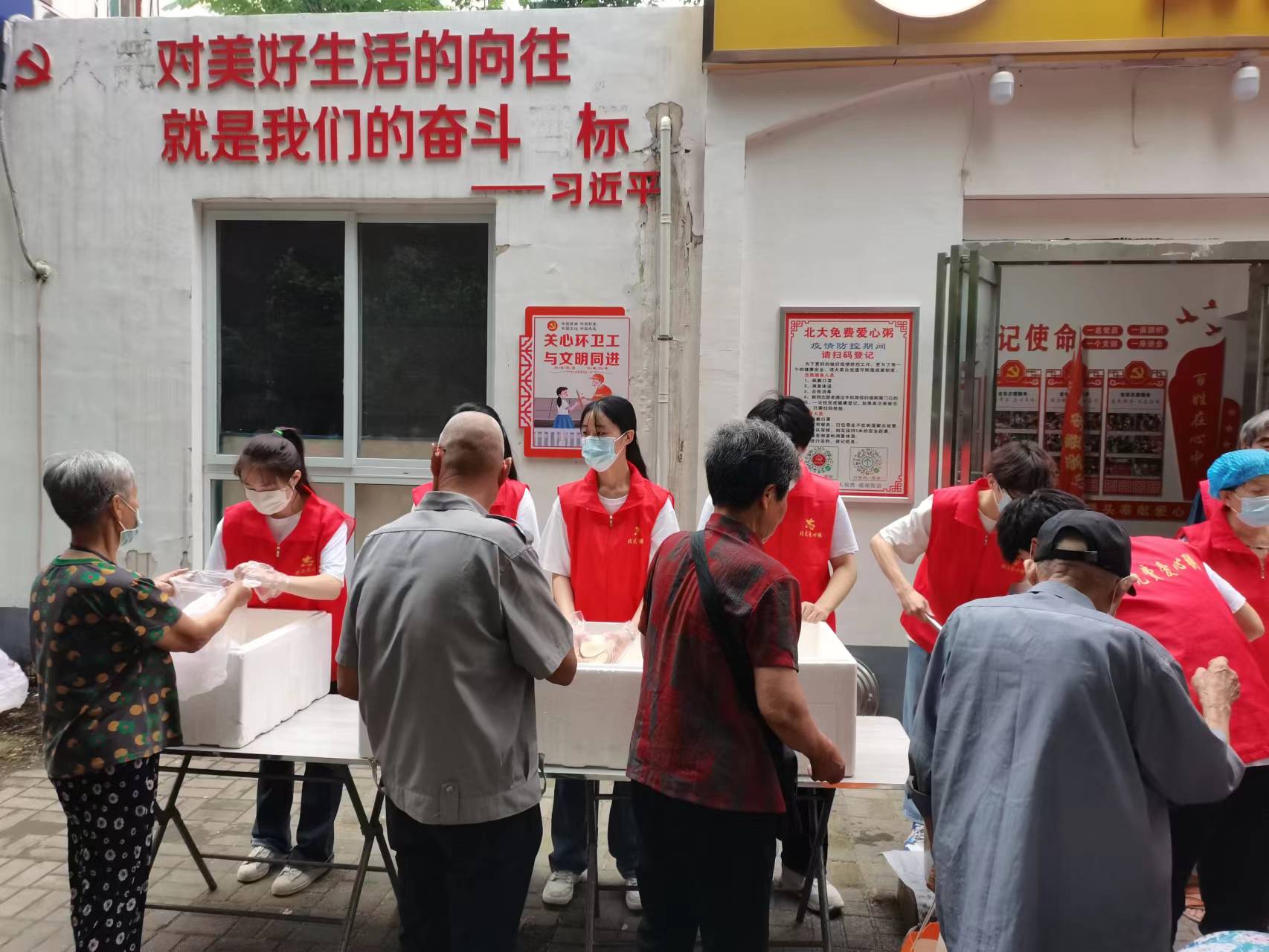为深入了解志愿服务的深度和内涵,使志愿活动具有更高层次的教育意义。7月2日,弘毅书院“豫见你”用爱心早餐温暖环卫工人暑期社会实践队于北大免费爱心粥发放点开展主题为“伸出温暖手,打开爱心门”的志愿活动。