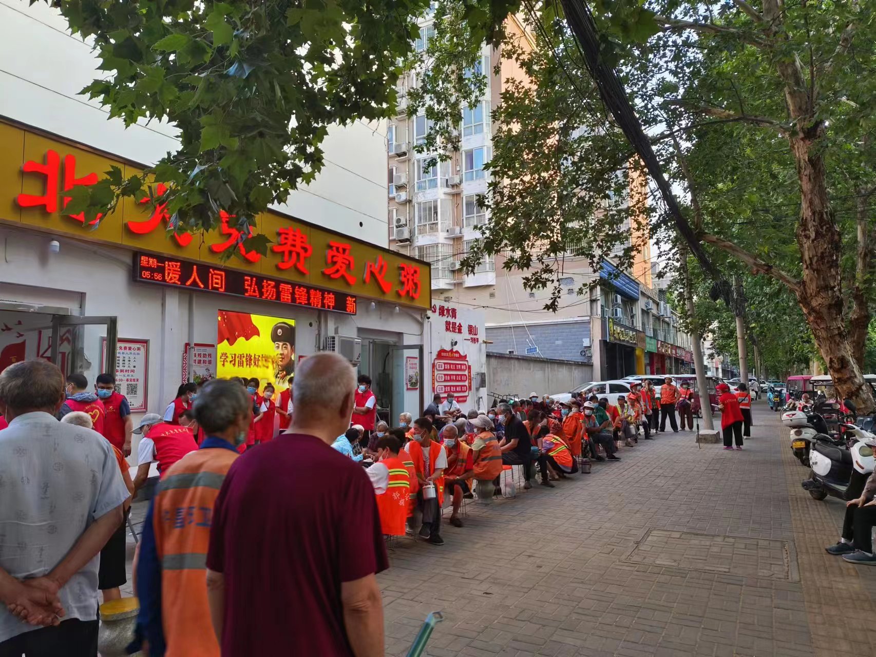 到达活动现场,志愿者们发现阿姨每日都在闷热的房间里工作,内心对辛勤劳动的工作者充满敬佩。在这次志愿活动中,志愿者们除参与发放早餐、维持现场秩序等工作,同时加入到爱心粥的筹备队伍中,协助工作人员做好爱心粥,为环卫工人送去温暖,传递爱与关心,用行动践行“奉献、友爱、互助、进步”精神。