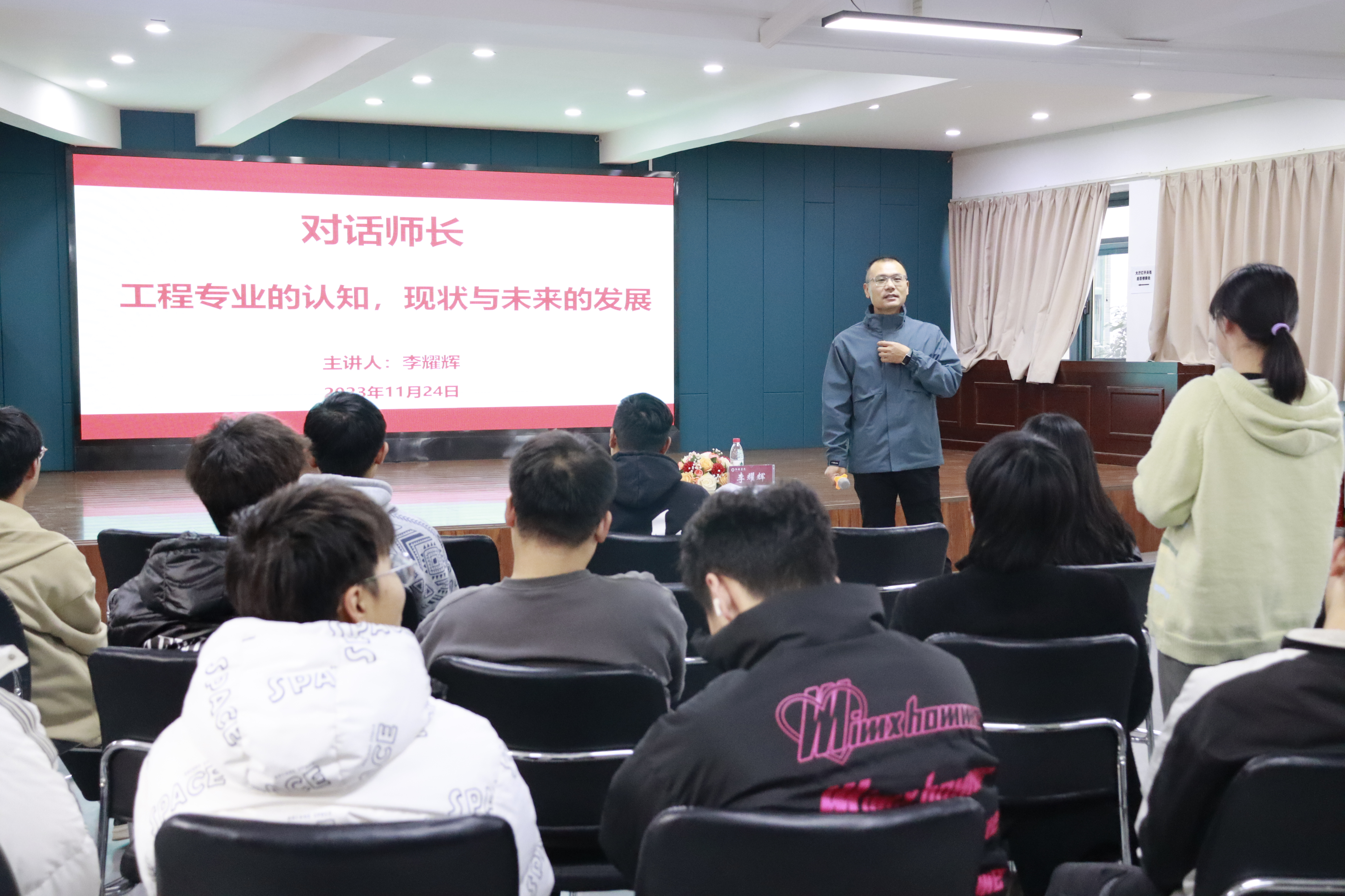 为了使同学们对工程专业有更深入的了解和认识,11月24日下午,“对话师长”特邀李耀辉博士在弘毅书院二楼多功能报告厅开展题为《工程专业的认知、现状与未来发展》的座谈交流活动,弘毅书院“一站式”学生社区工程类专业学生代表参加。