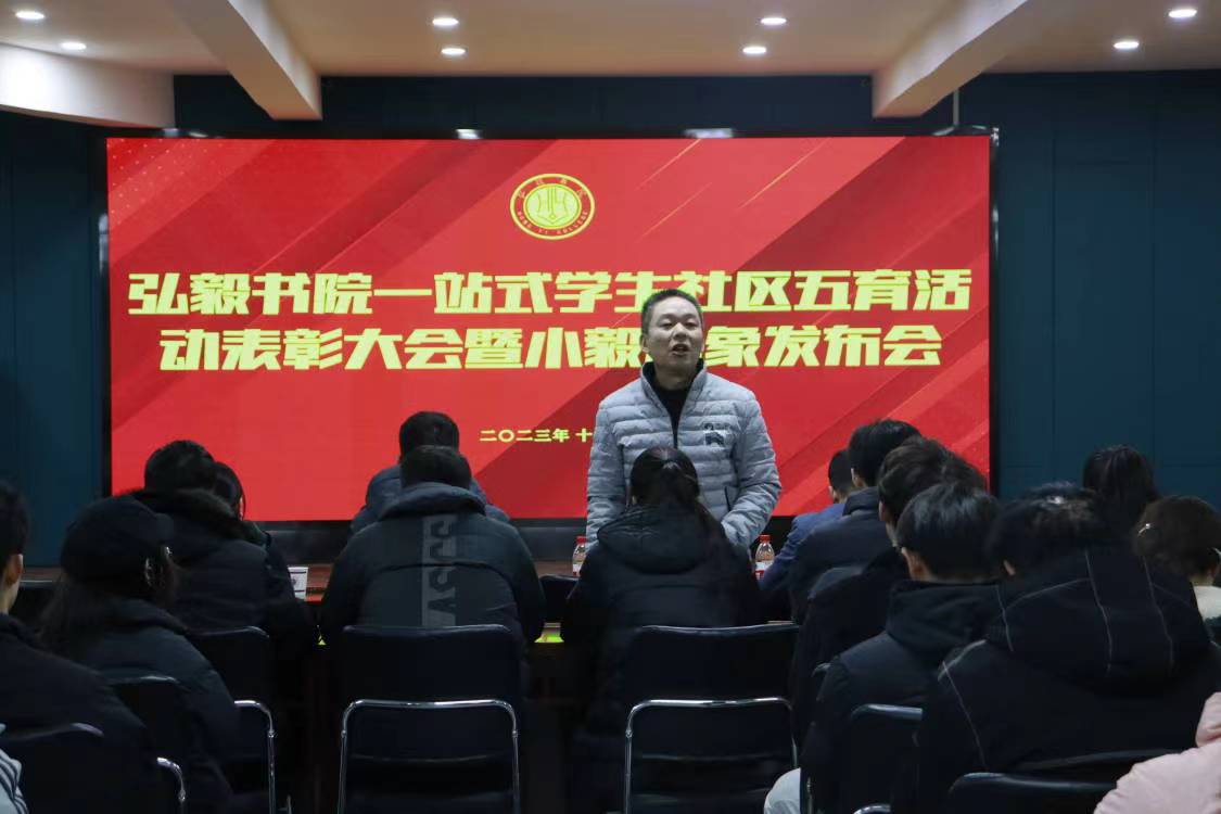 12月22日,弘毅书院“一站式”学生社区五育活动表彰大会暨小毅形象发布会在弘毅书院二楼多功能厅举行。党委学生部副部长、学生处副处长李鹏,外语学院党委副书记陈化宇,信息工程学院党委副书记王晓霞,弘毅书院党委副书记董占奇出席会议,弘毅书院管理团队、社区辅导员和优秀学生代表参加。