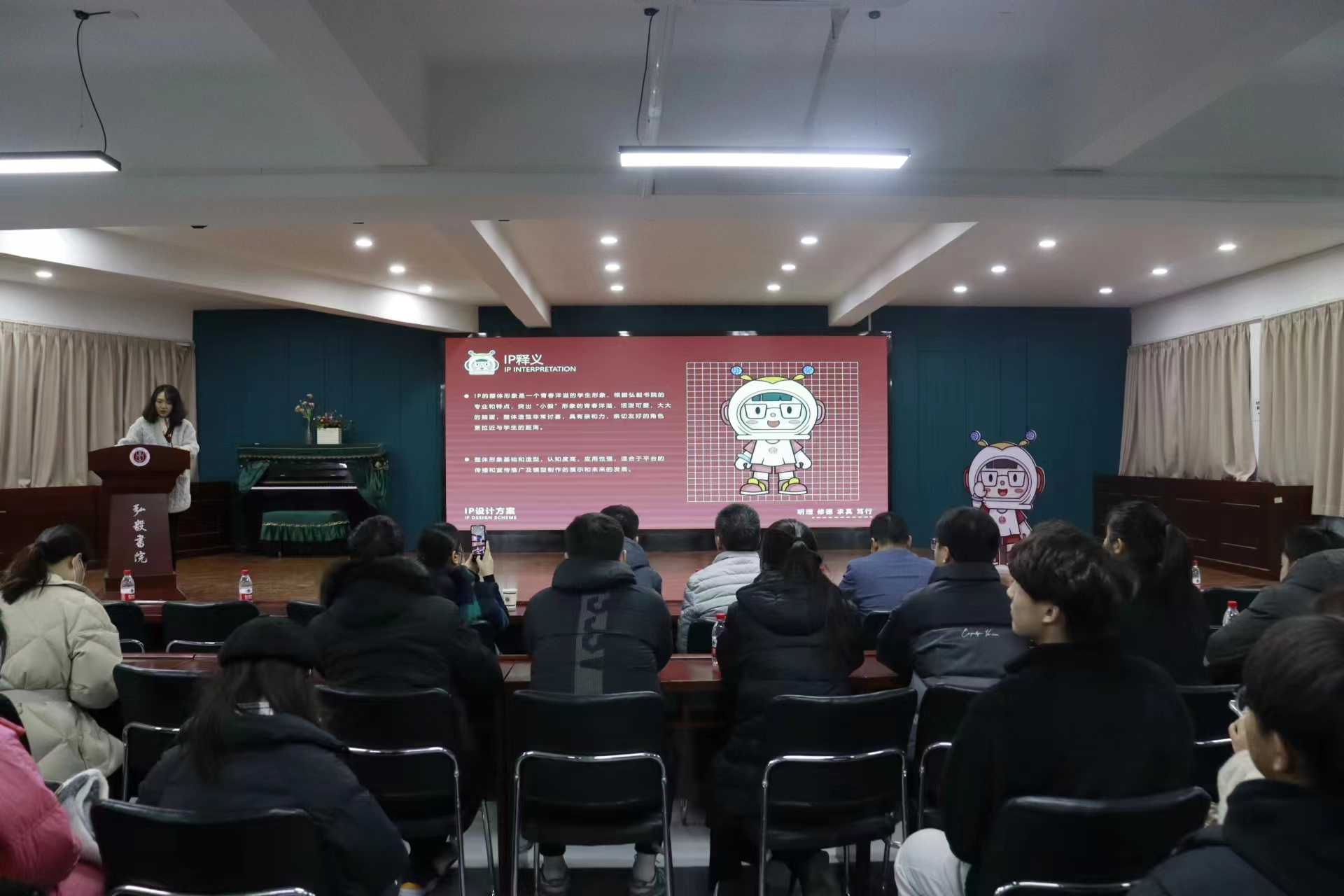 会上,社区青年学生代表宋享泽,就社区学习生活进行分享发言。与会校领导对河南省国家安全教育主题作品征集大赛一等奖、许昌学院社会实践先进个人、弘毅书院综合活动一等奖、弘毅书院毅智时间知识竞答优秀奖颁发了奖品和荣誉证书。社区学生张丁丁、刘珈麟、周焌阳带来演奏节目《雪落下的声音》。弘毅书院团委负责人温甜发布弘毅书院“一站式”学生社区IP形象:小毅。此款IP形象以社区特色为设计主旨,整体造型具有亲和力,代表着社区学生“明理、修德、求真、笃行”的精神品格。目前,IP系列衍生文创及表情包已在公众平台上架。