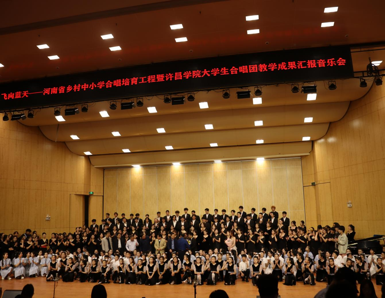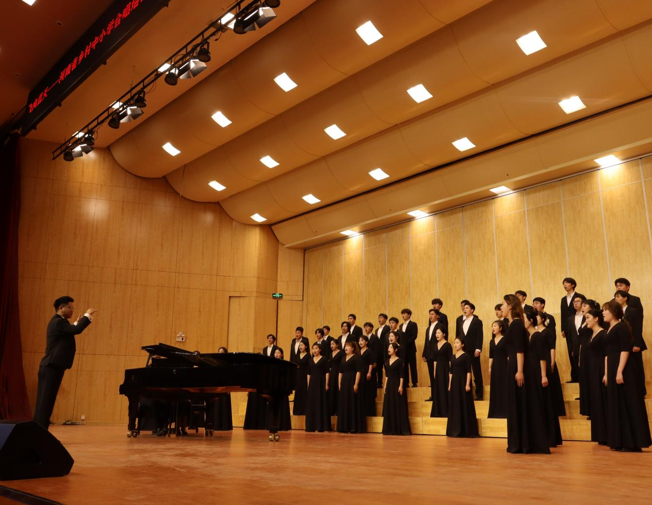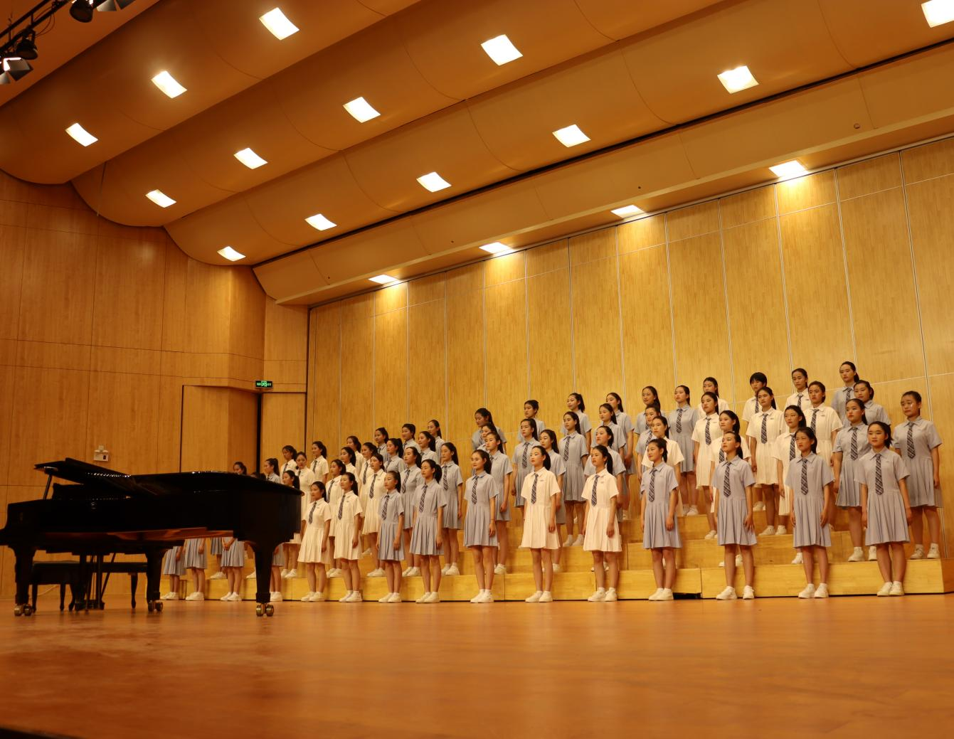 在演奏环节的最后阶段,大学生合唱团与中小学生合唱团一起合唱《领航》,把现场氛围推上了高潮。