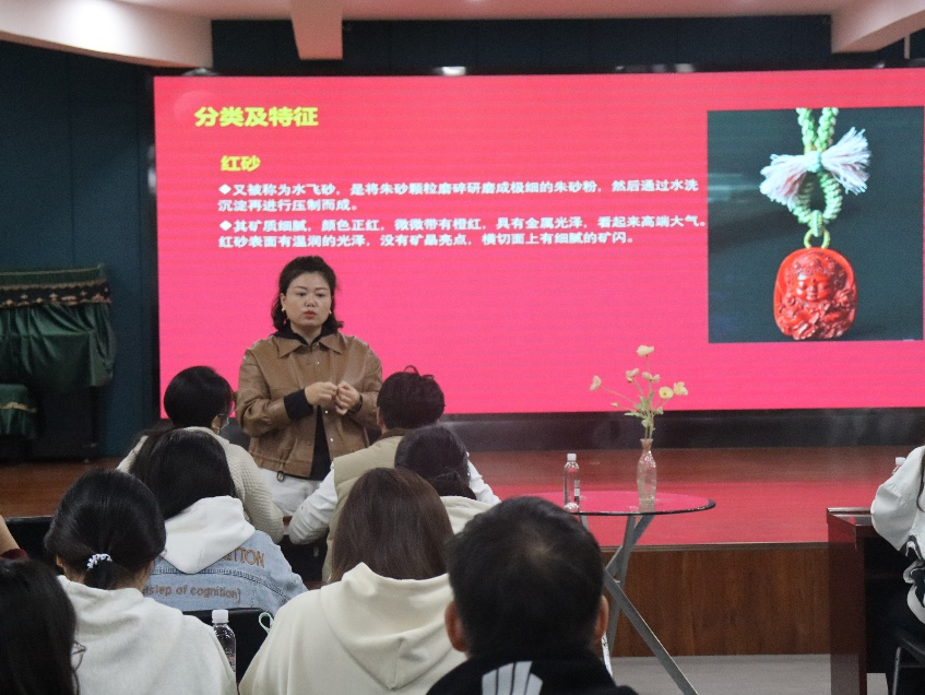 11月8日下午,为丰富“一站式”学生社区同学课余生活、提升鉴赏能力,弘毅书院蒲公英训课堂特邀许昌市资深珠宝师胡延杰、刘婷开设“朱砂的鉴定和制作”珠宝课程。