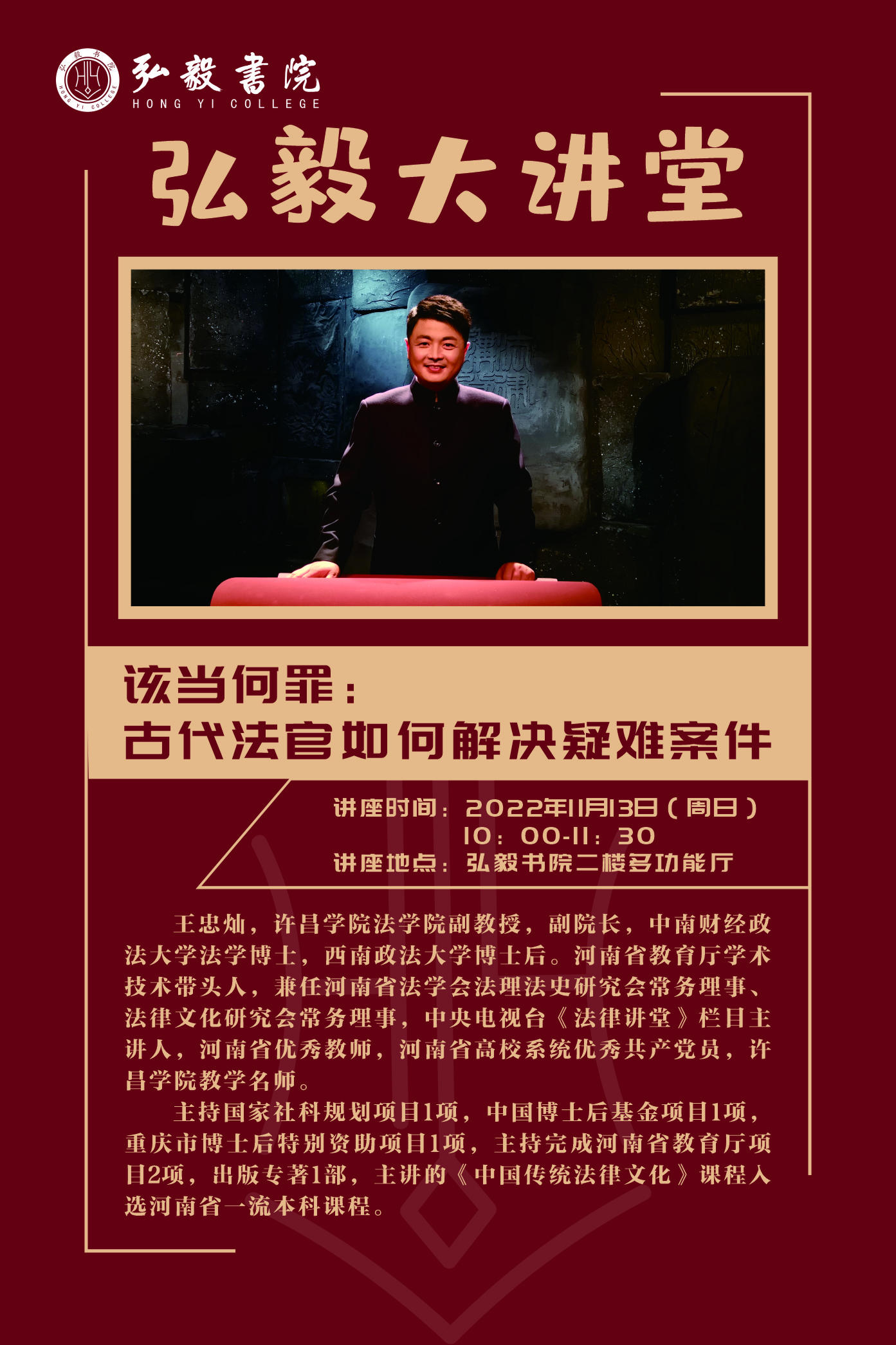讲座主题:该当何罪:古代法官如何解决疑难案件