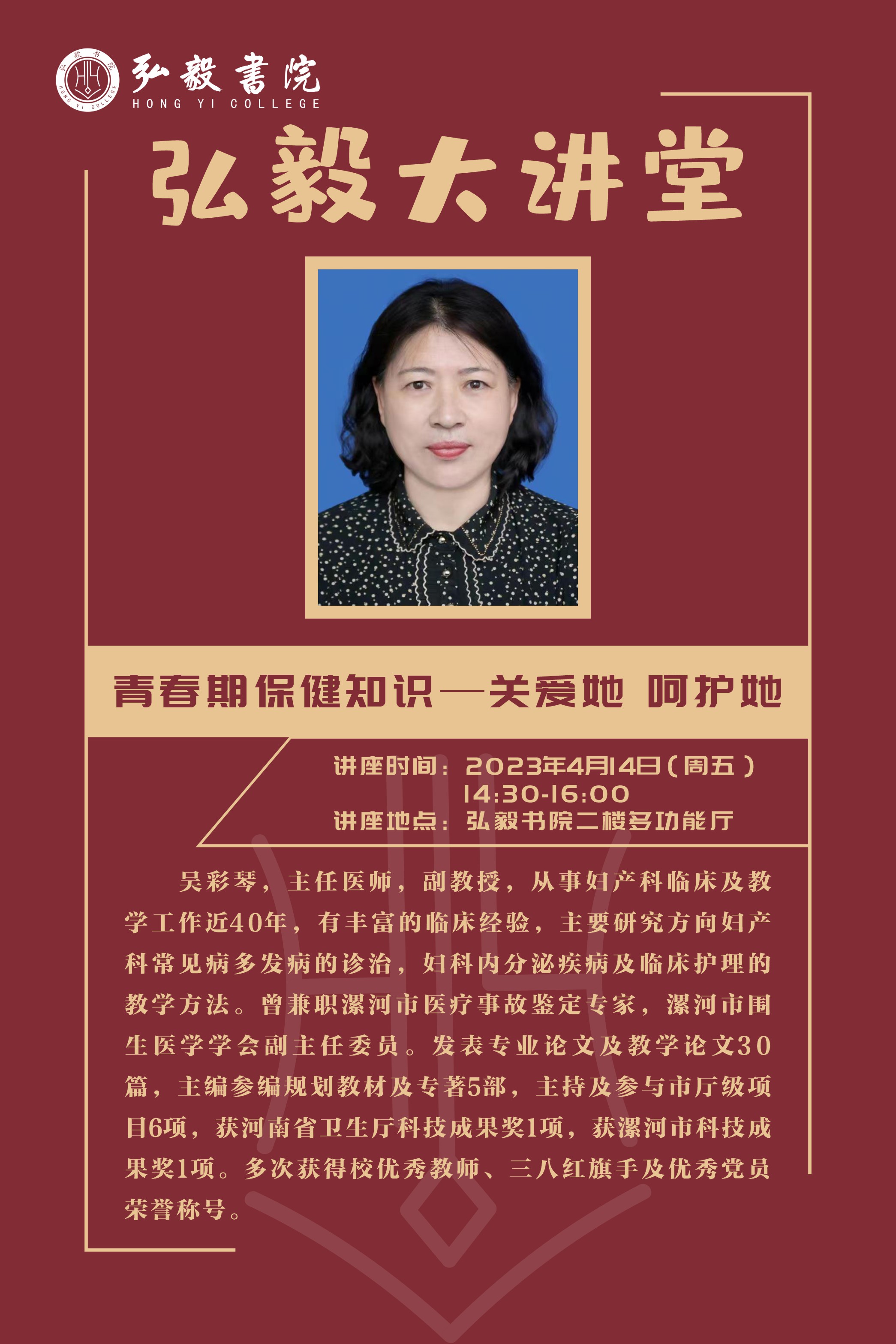 吴彩琴,主任医师,副教授,从事妇产科临床及教学工作近40年,有丰富的临床经验,主要研究方向妇产科常见病多发病的诊治,妇科内分泌疾病及临床护理的教学方法。曾兼职漯河市医疗事故鉴定专家,漯河市围生医学学会副主任委员。发表专业论文及教学论文30篇,主编参编规划教材及专著5部,主持及参与市厅级项目6项,获河南省卫生厅科技成果奖1项,获漯河市科技成果奖1项。多次获得校优秀教师、三八红旗手及优秀党员荣誉称号。