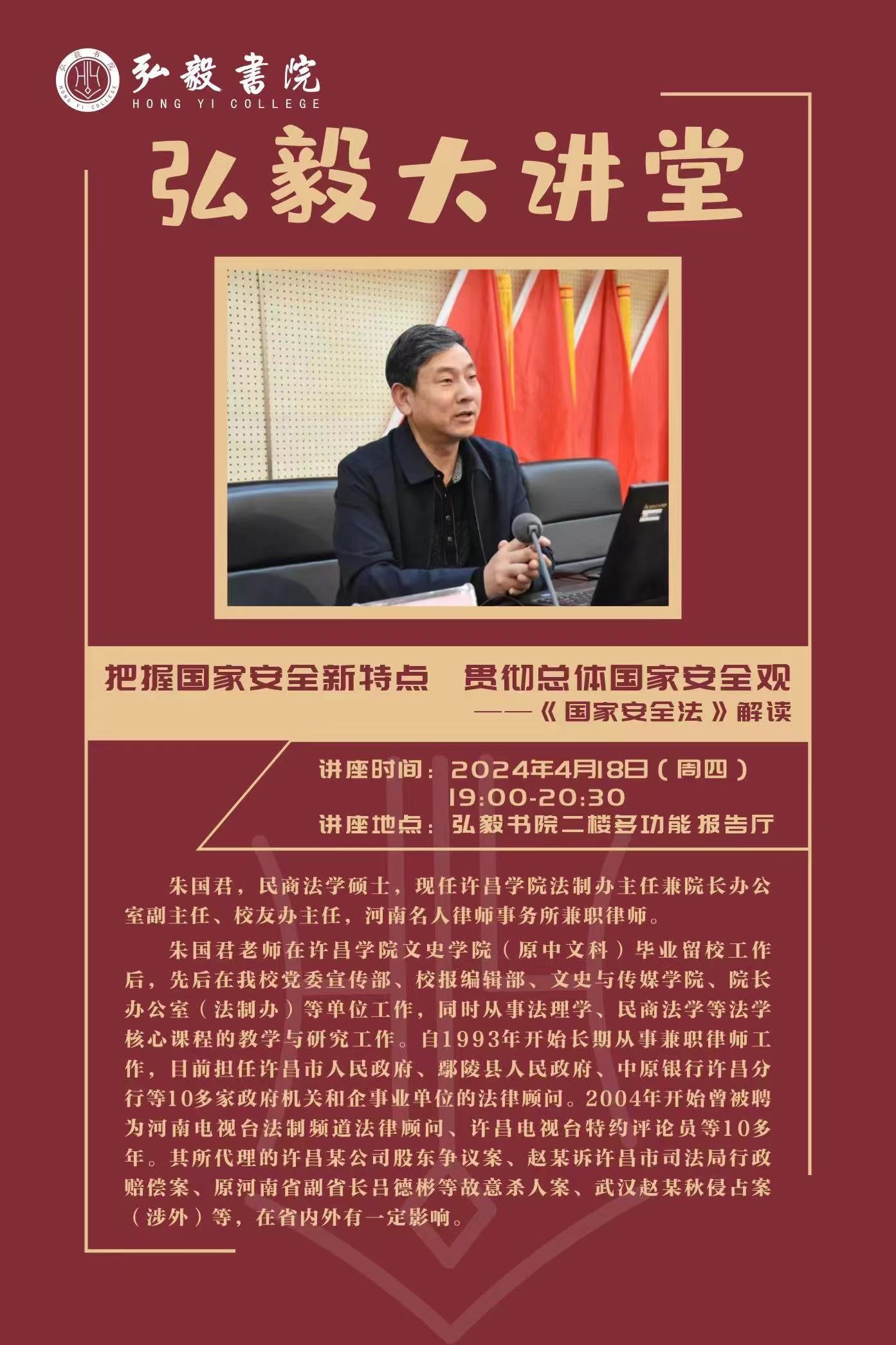 讲座主题:把握国家安全新特点 贯彻总体国家安全观