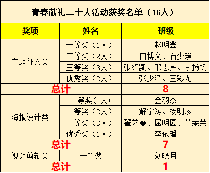 青春献礼二十大获奖名单