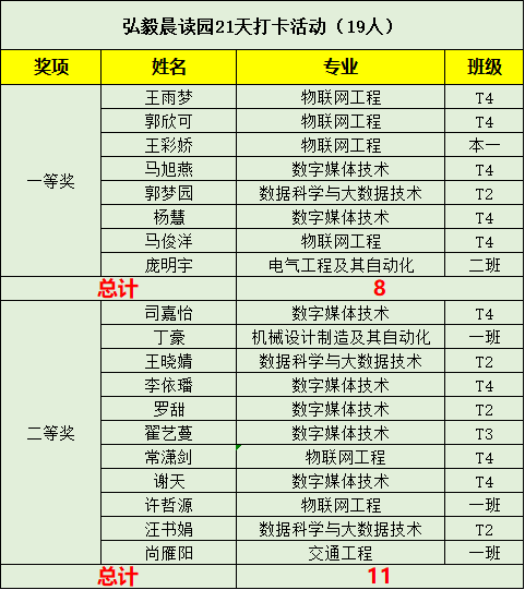 弘毅晨读园21天打卡活动获奖名单
