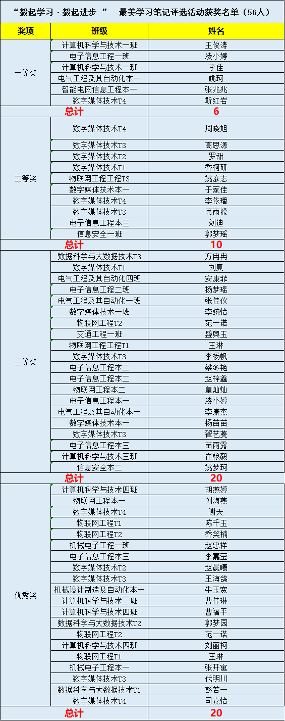 “毅起学习,毅起进步”最美学习笔记评选活动获奖名单