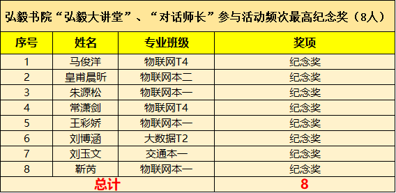 “弘毅大讲堂”“对话师长”参加活动频次最高纪念奖获奖名单
