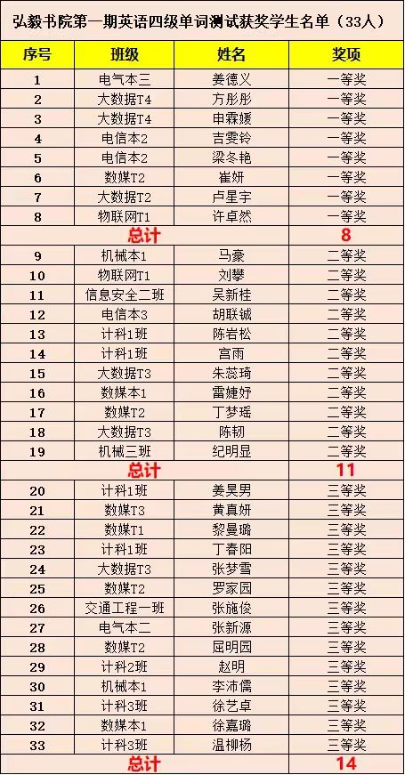 英语四级单词测试获奖名单