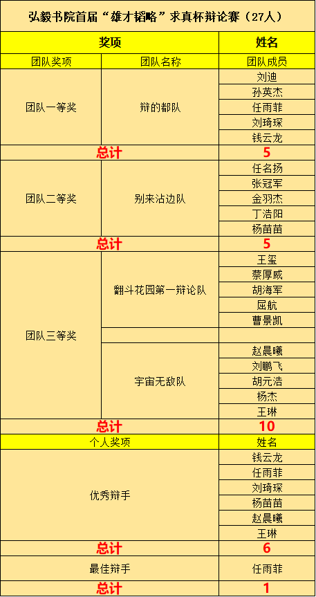 "雄才韬略"求真杯辩论赛获奖名单